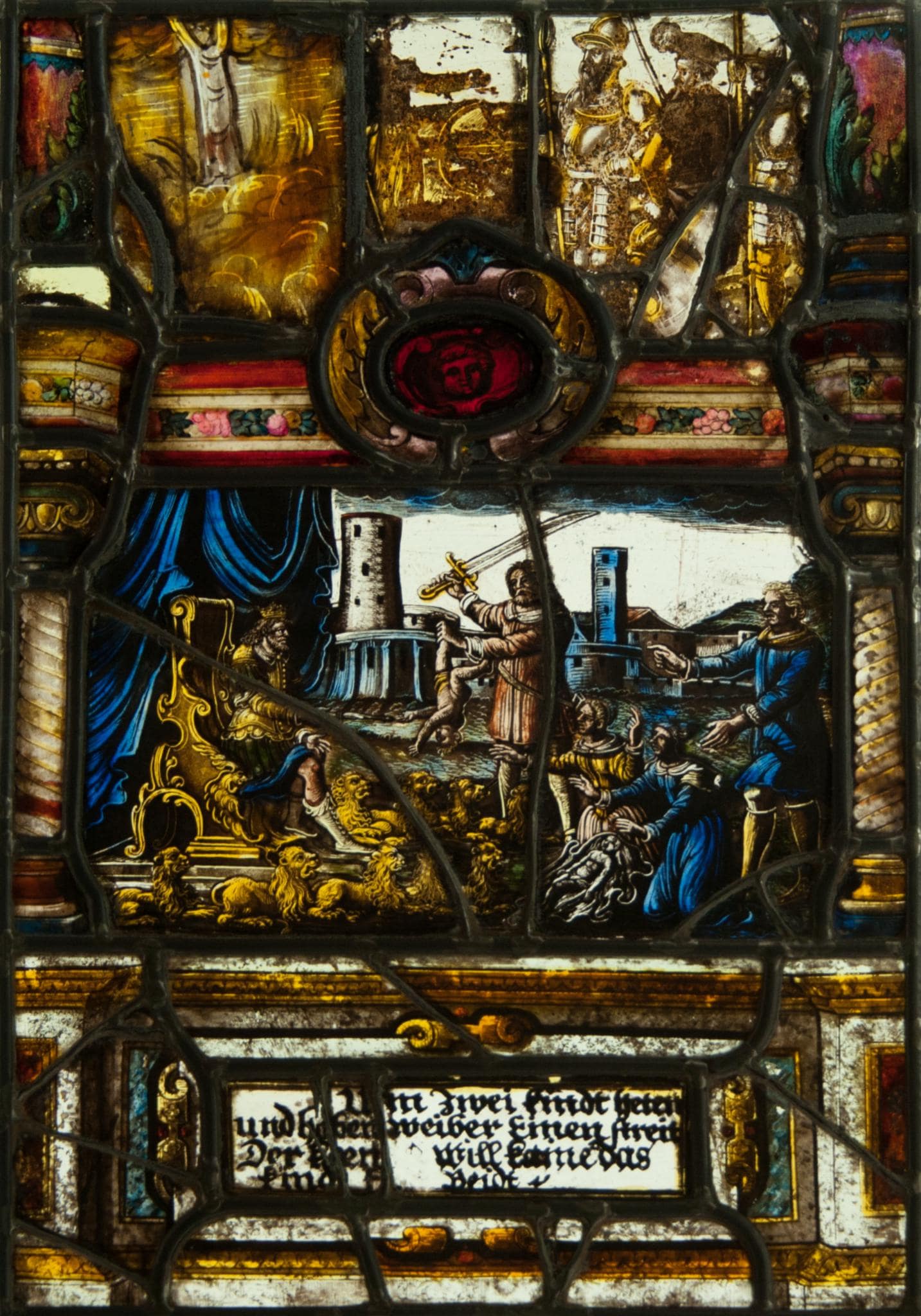 Fragmentarische Bildscheibe mit Urteil Salomons