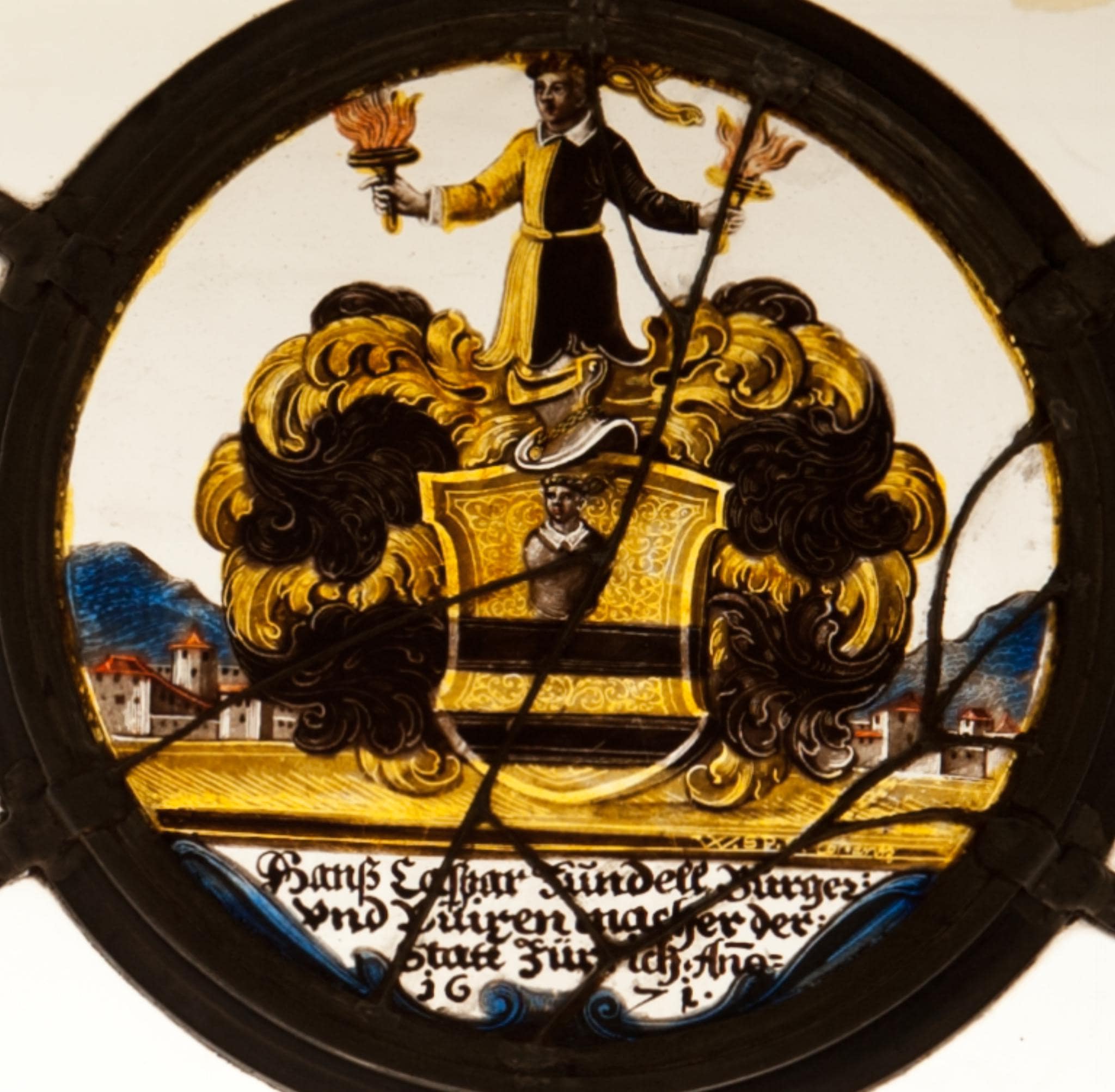 Hasler, R., & Keller, S. (2020). Runde Wappenscheibe Hans Kaspar Zundel. Dans Vitrosearch. Consulté le 5 décembre 2025 de https://www.vitrosearch.ch/objects/2660965.