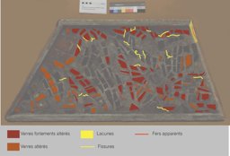 Wolf, S., Dumont, A., avec la collaboration de Hugenschmidt, J. et Gosselin, C. (2021). La dalle de verre. Analyse et conservation. Synthèse des résultats du projet de recherche. Rapport non publié, Vitrocentre Romont, 24–25, 42-45.