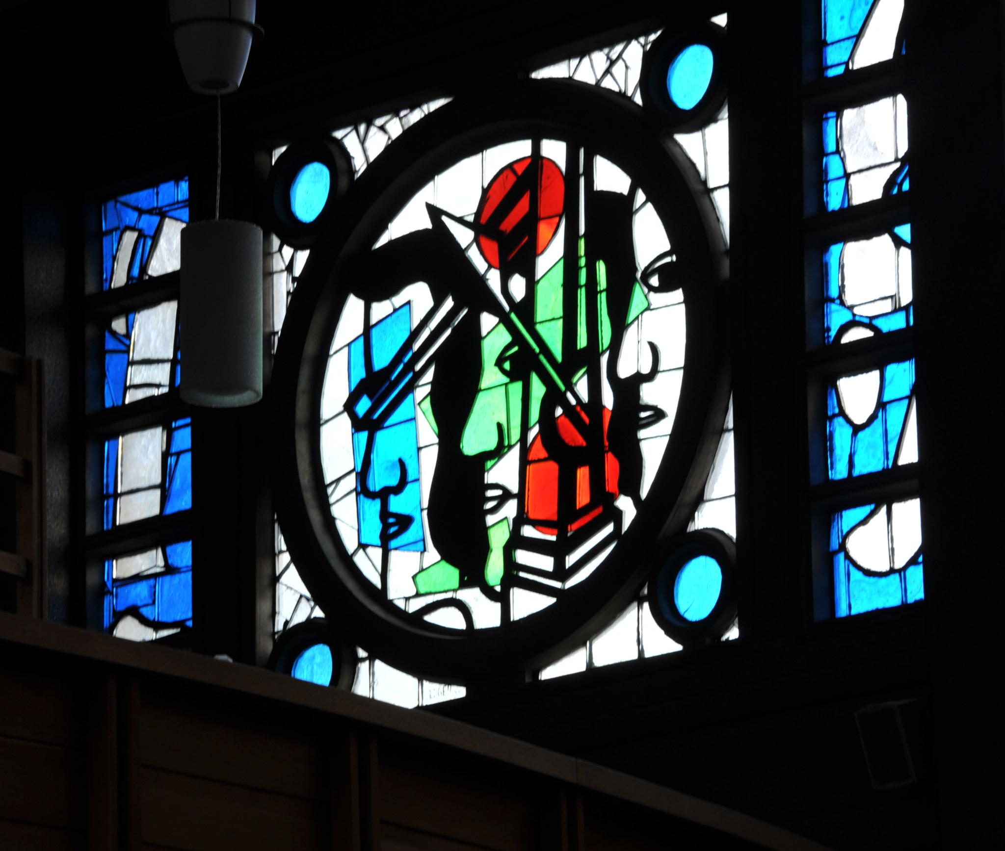 L'expressivité des vitraux de Fernand Léger réside dans la combinaison de symboles anciens avec des compositions abstraites. Le réseau en béton armé fait partie intégrante du dessin et renforce la lisibilité des motifs.