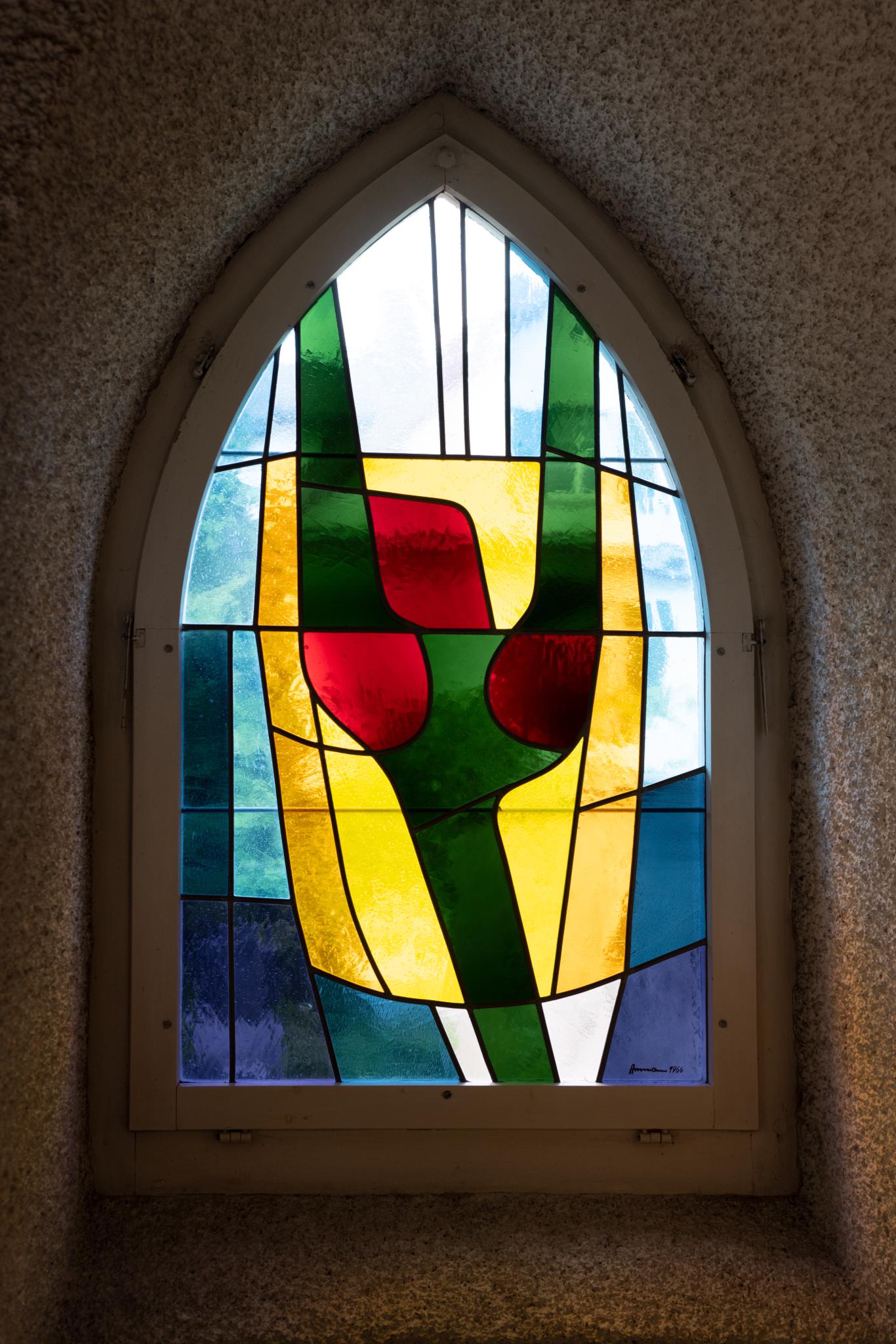 Die 1966 hergestellten Fenster des Schiffs, versehen mit kleinen Wappen, entstanden in der Werkstatt Engeler in Andwil. Vermutlich entstand auch die abstrakte Glasmalerei Karl Ammanns in dieser Werkstatt.