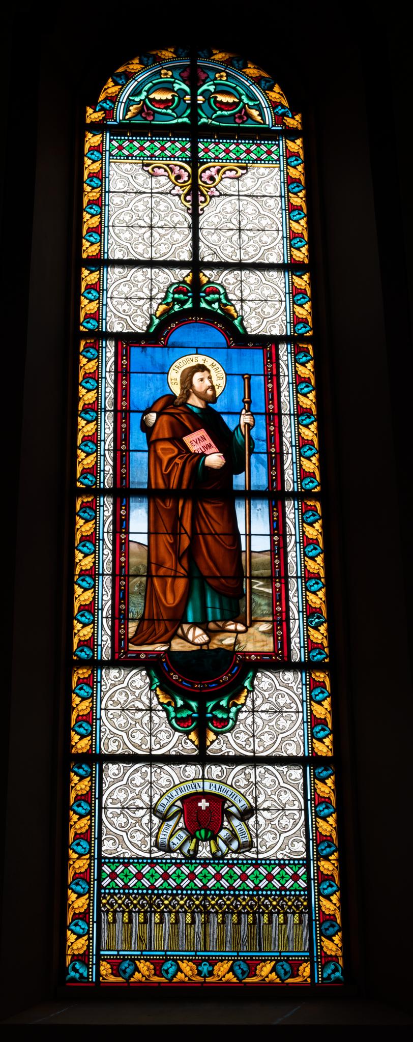In der katholischen Kirche St. Johann sind drei Gruppen unterschiedlich datierender Glasmalereien vorhanden. Das Jakobus- und das Josefsfenster wurden 1880/81 vom damaligen Pfarrer Jakob Blasius Fridlin aus Zug gestiftet, womöglich aus Anlass seines bevorstehenden Abschieds 1881. Die beiden Fenster befanden sich ursprünglich im Chor, bevor sie 1893 durch die Fenster von Friedrich Berbig ersetzt und ins Schiff zu den Seitenaltären versetzt wurden (Katholisches Kirchgemeindearchiv Tobel, KG 1, Bauwesen 1489-1985, II 0290). Stilistisch sind die beiden Fenster mit den zeitgleich von Friedrich Berbig für die evangelische Kirche in Roggwil geschaffenen Fenstern (TG_680, TG_681) verwandt, was vermuten lässt, dass dieser auch der Autor dieses Fensterpaars ist.