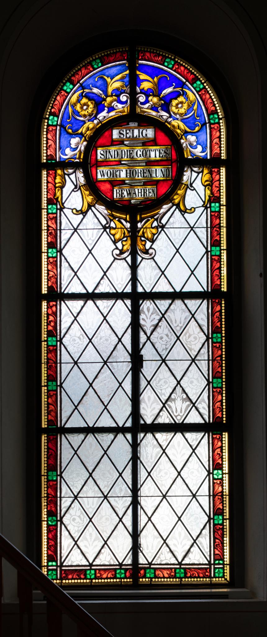 Die Inschrift im Medaillon stammt aus dem Lukas-Evangelium, 11,28.