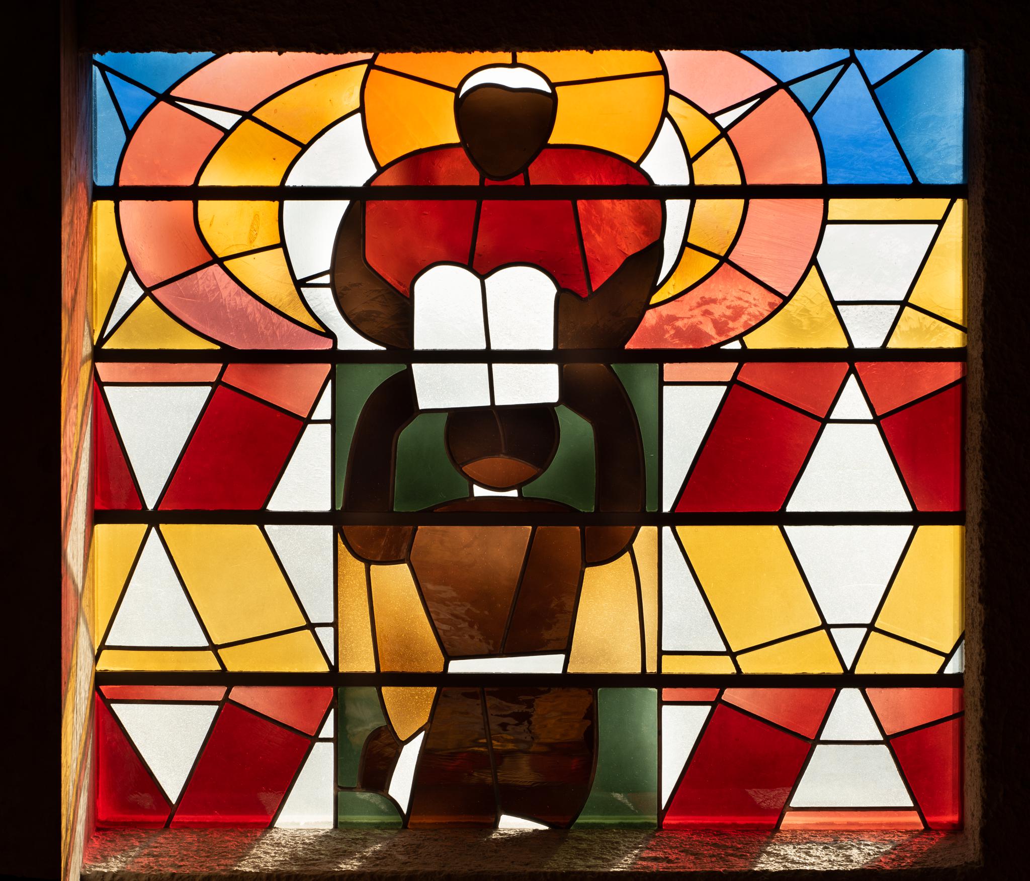 Die Fensterserie im Schiff soll die Begegnung Gottes mit den Menschen verdeutlichen.