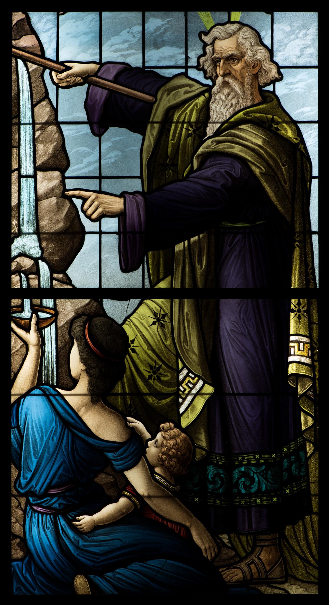 1911 stiftete der Industrielle Wilhelm Heinrich Diethelm (1848–1932) zum Andenken an seinen in Südostasien an der Cholera verstorbenen Sohn Wilhelm Rudolf zwei Chorfenster für die evangelische Kirche in Erlen (Evangelisches Kirchgemeindearchiv Erlen, Protokollbuch 1887–1930; Protokoll der Sitzung der Kirchenvorsteherschaft vom 28.3.1911). Der beauftragte Glasmaler Friedrich Berbig schuf ein Fenster mit einer Darstellung des Quellwunders des Moses, für welches er ein bereits 1906 in der katholischen Stadtkirche St. Nikolaus in Frauenfeld zur Anwendung gekommenes Schema (TG_2113) wiederverwendete. Das zweite Fenster zeigt das Gebet Jesu am Ölberg nach der Vorlage des bekannten Gemäldes Christus in Gethsemane (1890) von Heinrich Ferdinand Hofmann.