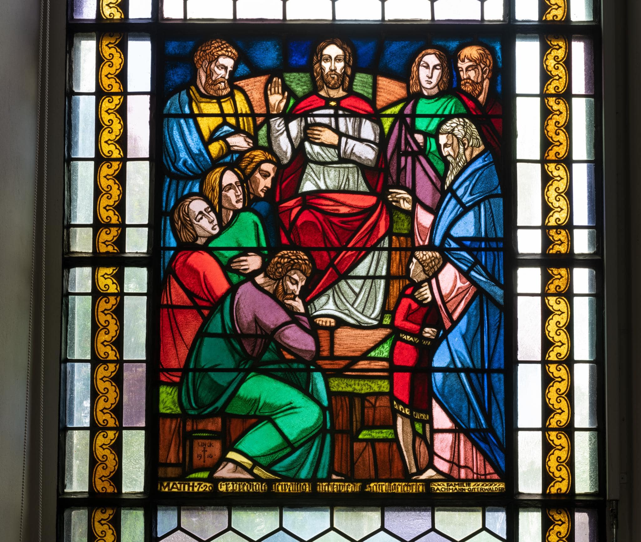 Linck erwähnte gegenüber Pfarrer Moppert, dass seine für Kurzdorf entworfenen Glasmalereien in ihrer farbigen Erscheinung in der Schweiz einzigartig sein dürften (Evang. Kirchgemeindearchiv Frauenfeld, 20 Kirche Kurzdorf 1899–1950, Glasgemälde Chor und Schiff 1915; Brief Linck an Pfarrer Moppert vom 8.9.1916). Da sich die Fertigstellung des Kirchenbaus verzögerte, nutzte der Künstler die Gelegenheit, ein Apsisfenster (Moses) und sechs Szenen aus dem Leben Christi vor dem Transport nach Kurzdorf im Gewerbemuseum Bern auszustellen. In der Tagespresse fanden die Arbeiten Beifall, eine “moderne Vereinfachung” und ein “ganz neuer Geist in der Glasmalerei” wurden darin festgestellt, die Zusammenstellung der kräftigen, leuchtenden Farben und die überzeugenden Kompositionen der Bildszenen hervorgehoben (Der Bund vom 28.9.1916, S. 3 und Berner Tagblatt vom 26.9.1916). In der Tat hatte man mit Linck einen “neuzeitlich schaffenden Fachmann der Glasmalerei” engagiert, der die Eigenheiten des Mediums berücksichtigte: “Er liefert keine Ölgemälde in Kartons, die der Techniker hernach durch ein hochnotpeinliches Aufteilen und in Bleifassen erst zu Glasfenstern umwandeln muß. Schon seine ersten Farbskizzen rechnen mit der Verteilung von hellen und dunklen Gläsern; sie stellen ab auf eine möglichst reine Flächenwirkung” (Röthlisberger, 1917, S. 119, 121). Lincks Glasmalereien in Frauenfeld-Kurzdorf zählen zu den frühesten nicht mehr dem Historismus verpflichteten Beispielen im Kanton Thurgau und künden die schon bald von Künstlern, Architekten und Intellektuellen geforderte Erneuerung der Kirchenkunst an.