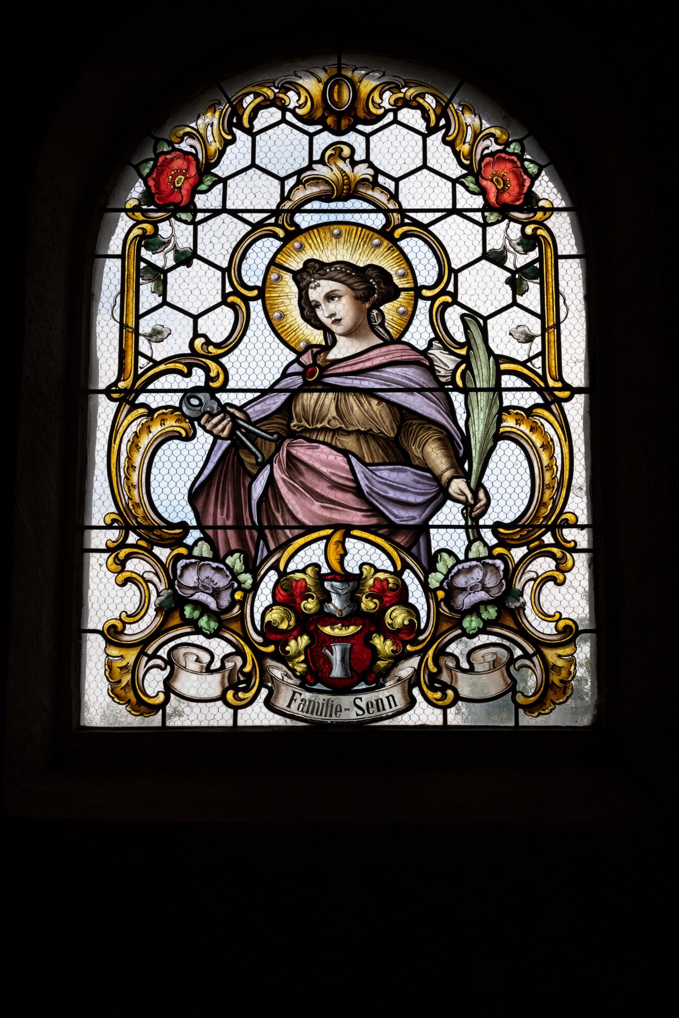 Anlässlich der Renovation der 1633 erbauten Kapelle von Gärtensberg schuf Friedrich Berbig 1908 sechs neue Rundbogenfenster, zwei davon mit Heiligenfiguren. Für diese Ausstattung hatte sich der Kinderpfarrer Adolf Lanter eingesetzt und Beiträge mehrerer Familien der Stadt Wil zur Deckung der 1800 Fr. gewinnen können (Kath. Kirchgemeindearchiv Wil, 03.02 Verhandlungsprotokoll Kirchenvorstandsrat, Bd. V 11.09.1902–29.06.1915, S. 162). Die dargestellten Heiligen Agatha und Nikolaus sind die Patrone der Stadt Wil, deren Rat die Kapelle ursprünglich erbaut hatte.