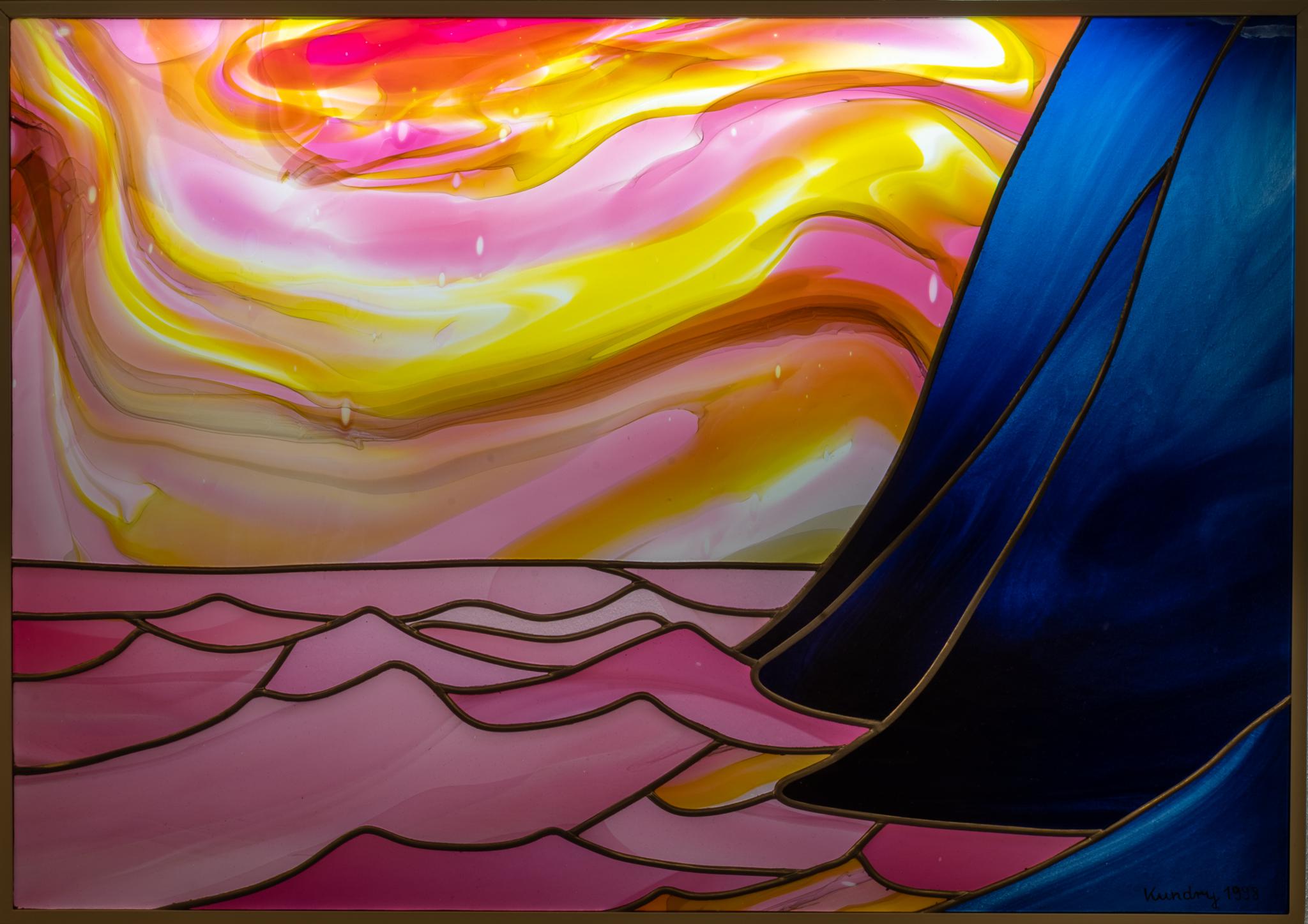 Farbiges, mit Schlieren durchsetztes Glas.