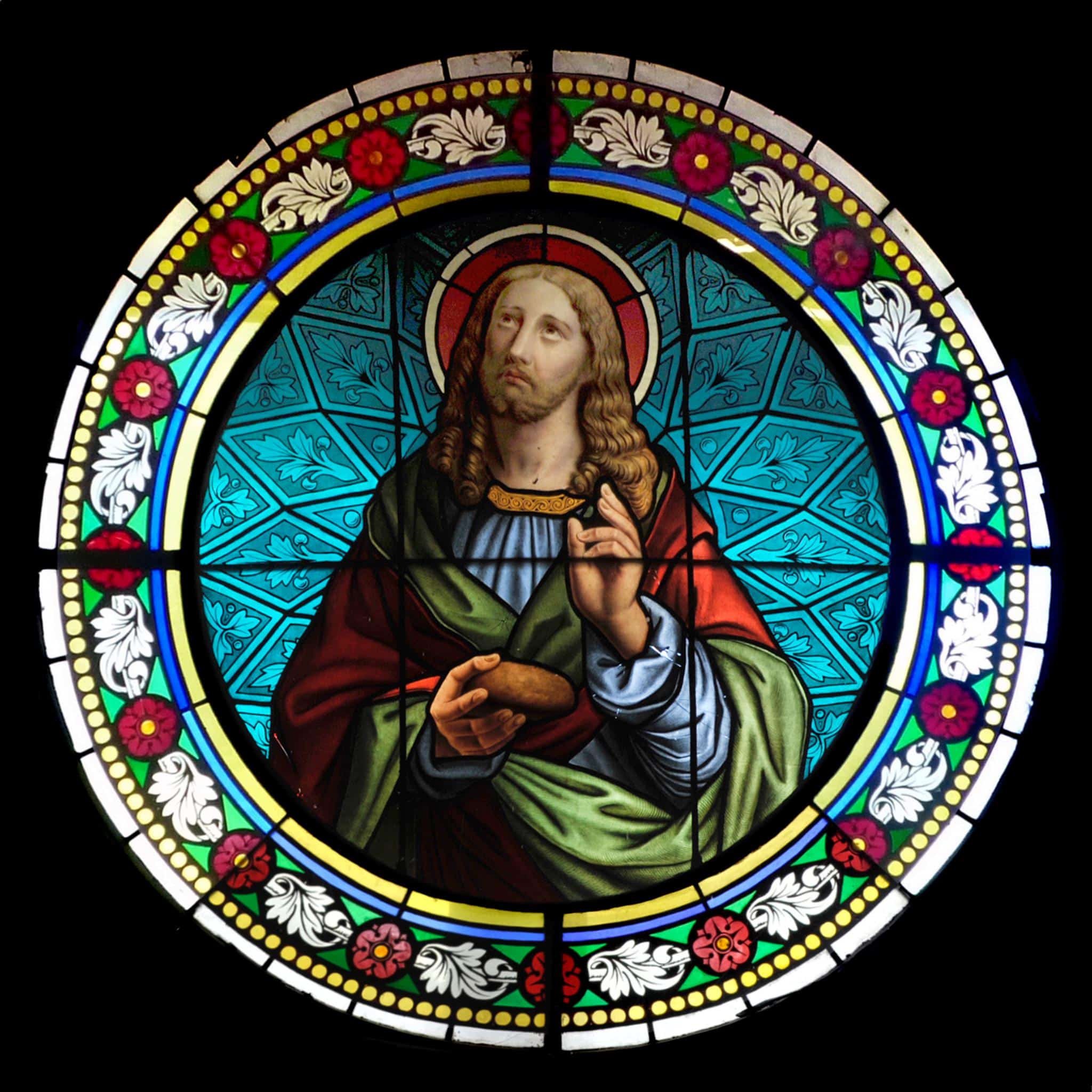 Zwar wurde St. Pelagius 1863–1888 im Stile der Neogotik erneuert und dabei mit Glasmalereien ausgestattet, stilistisch lässt sich jedoch keine Verwandschaft zwischen der Rundscheibe mit segnendem Christus und den ornamentalen Glasmalereien (Masswerkfüllungen) des 19. Jahrhunderts in der Pelagius-Kirche feststellen. Diese wurden grösstenteils bereits um 1866 erstellt (Mittermaier, Lauingen), während die Rundscheibe wohl ins letzte Viertel des 19. Jahrhunderts datiert.