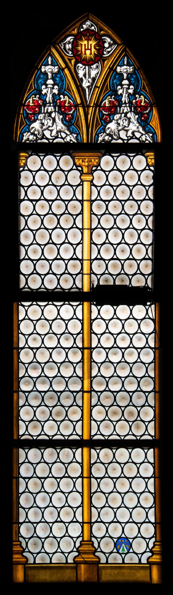 Eines von acht neugotischen Schifffenstern, die um 1906 in Anlehnung an die älteren Fenster Eduard Hechts von 1881 (siehe TG_334 – TG_337) geschaffen wurden.