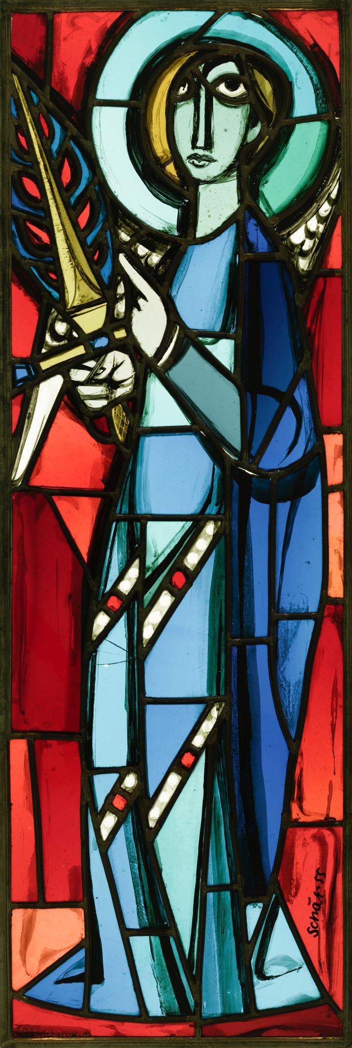 Snopko, C., & Burkard, J. (2022). Engel mit Flammenschwert · Ange avec épée de feu. Dans Vitrosearch. Consulté le 5 décembre 2025 de https://www.vitrosearch.ch/objects/2698514.