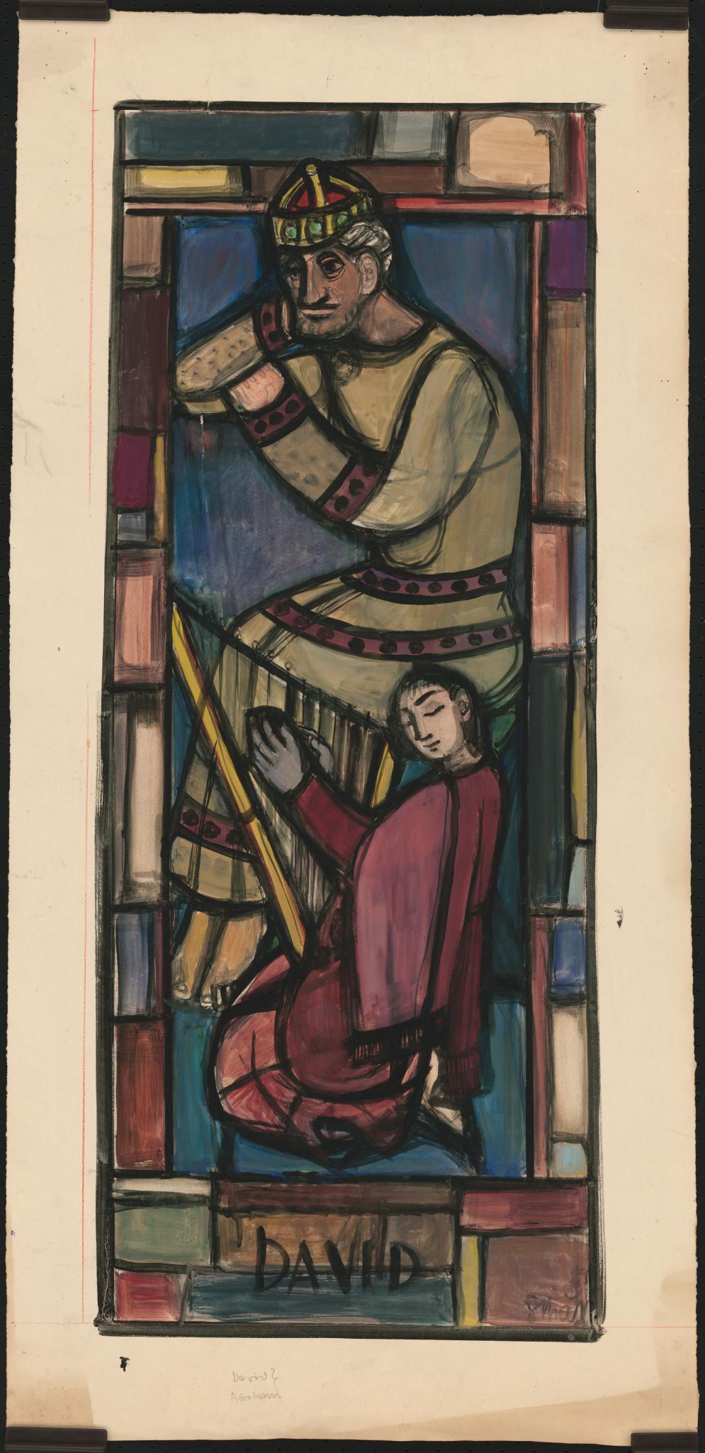 Das entsprechende Glasgemälde der Markuskirche weist einige Unterschiede zum vorliegenden Entwurf auf. So ist etwa David frontal anstatt seitlich ausgerichtet. Dies betont seinen leeren Blick, der am Betrachter vorbei geht.