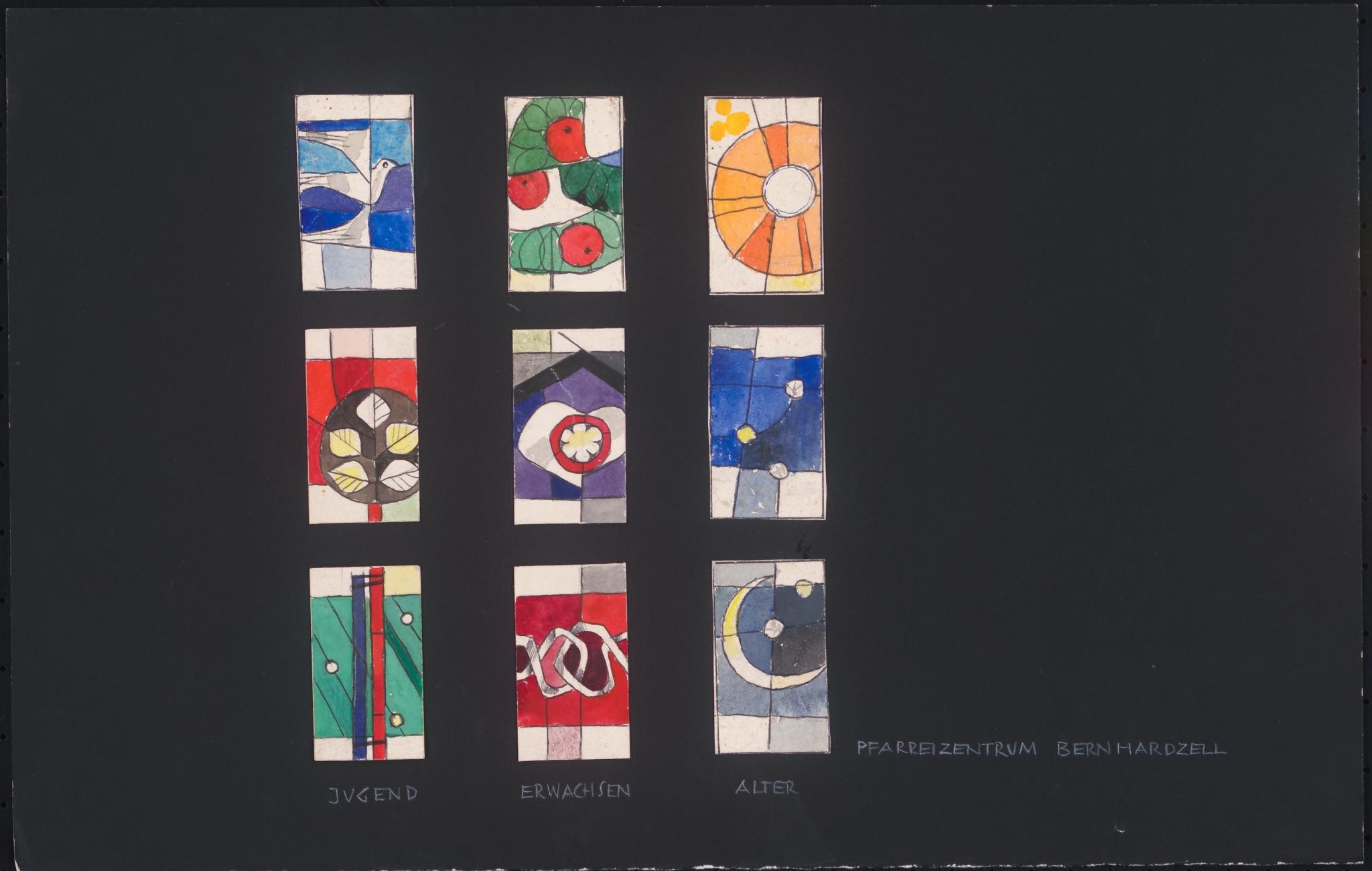 Entwurf einer Glasmalerei des Foyers im katholischen Pfarreiheim St. Johannes Baptist in Bernhardzell SG (HS_1048).