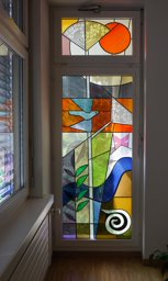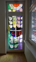 Die Spirale könnte für den Eskulabstab, den Stab der Mediziner, stehen und wie auch der Flussverlauf auf den Standort des Fensters, die Stadt Bad Ragaz mit ihren Thermalquellen verweisen. Der Vogel (Taube) könnte das Wappen der politischen Gemeinde Bad Ragaz symbolisieren. Das violette X in der rechten Bildhälfte erinnert an die kreuzförmige Bänderung des Bündels im Kantonswappen von St. Gallen.