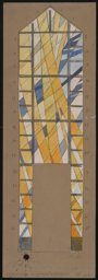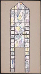 Anlässlich des 1150-jährigen Jubiläums der Stadt Degersheim (837–1987) stiftete der Landamman und der Regierungsrat des Kantons St. Gallen diese Glaswand für die Kapelle des neu errichteten Altersheims in Degersheim. Heinrich Stäubli entwickelte zwei unterschiedliche Farb- und Ornamentkonzepte für die glasmalerische Gestaltung der Eingangsseite der Kapelle. Neben dem schlussendlich spiegelverkehrt ausgeführten Entwurf für eine Ornamentverglasung aus sich kreuzenden gelb-orangen und blau-violetten Bändern (HS_21), gibt es einen Vorschlag für eine ornamentale Verglasung aus geraden und gekrümmten Linien in zarten Grau-, Gelb- und Violetttönen (HS_408), die weniger dynamischer und weniger leuchtend gewirkt hätte, sich aufgrund ihrer Subtilität besser in die eher bescheidene räumliche Situation der kleinen Kapelle eingefügt hätte.