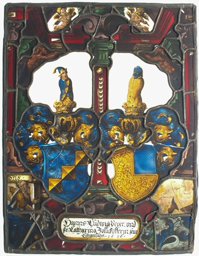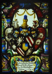 Avec deux autres vitraux conservés au Victoria and Albert Museum, qui partagent avec ce panneau une même provenance, ce vitrail fait partie d’une série de vitraux héraldiques aux armes de puissantes familles de Schaffhouse, dont trois sont datés de 1616 et deux signés du même monogramme „IM“ (cf.VAM_43, VAM_44 et VAM_45). L’emplacement d’origine de cette série n’a toutefois pas pu être établi.