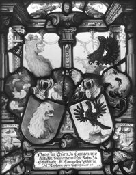 En 1920, Hans Lehmann fit observer que ces trois monogrammes ne correspondaient pas aux signatures connues des Murer, une famille de peintres-verriers actifs à Zurich, et proposa d’attribuer ces trois vitraux au peintre-verrier Hans Wilhelm Tetzler de Schaffhouse (V&A, documentation, état du 20 décembre 2013). En 1952, Paul Boesch réfuta cependant cette attribution, arguant que Tetzler mourut en 1611, et rendit ces trois vitraux au peintre-verrier zurichois Josias Murer, auquel il ajouta un quatrième vitrail héraldique, passé en vente en 1905 à Paris lors de la vente la collection de feu M. F. Aylé, aux armes de Franziskus Ziegler et de ses deux femmes (von Walkirch et Peyer), qui, également signé IM et daté de 1616, présente une composition analogue, ce que le style et l’iconographie, dont les deux allégories féminines représentées dans les angles inférieures, étayent (ibid. ; Boesch 1954f, p. 83 ; Cat. vente Paris 1905, p. 11, lot 58).