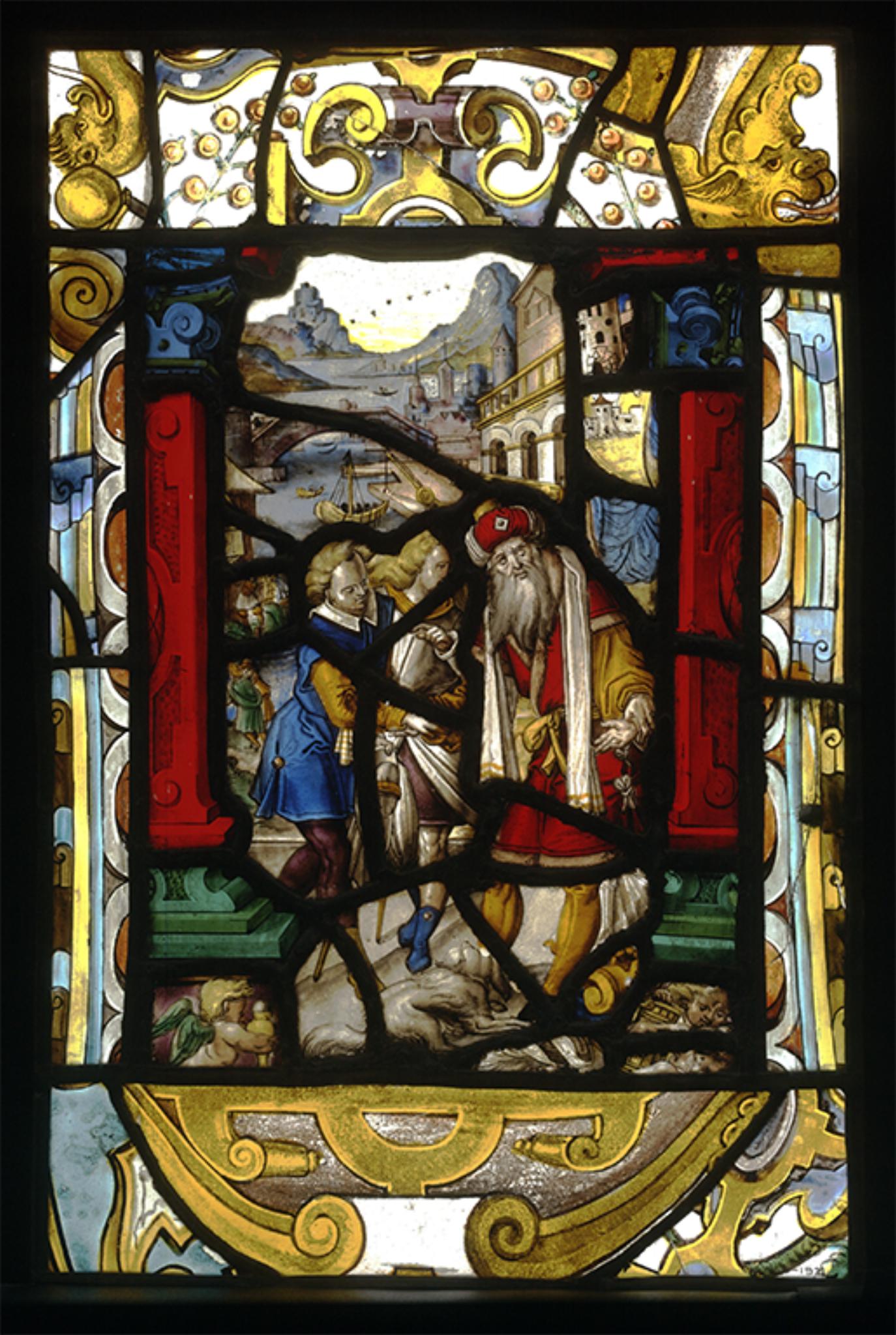 Bergmann, U., & Hueber, F. (actualisé) (2021). Vitrail historié aux armes absentes : Ragouël donne à Tobie sa fille Sarra en mariage. Dans Vitrosearch. Consulté le 5 décembre 2025 de https://www.vitrosearch.ch/objects/2705619.
