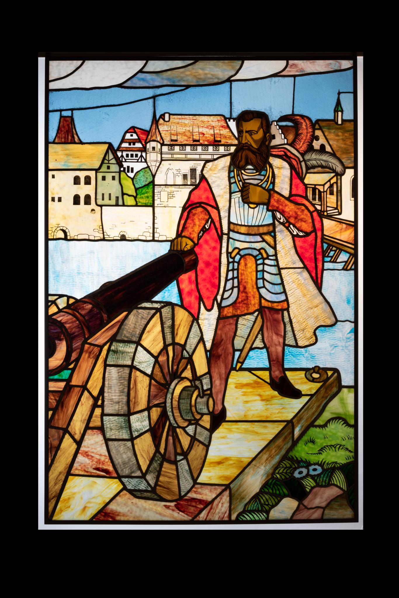 Das mittlere und grösste Bildfeld zeigt eine figürliche Szene mit einer Stadtansicht, im Vordergrund befindet sich eine Kanone, die auf die Stadt gerichtet ist. Zwischen Kanone und Stadt steht der Solothurner Schultheiss Niklaus Wengi.