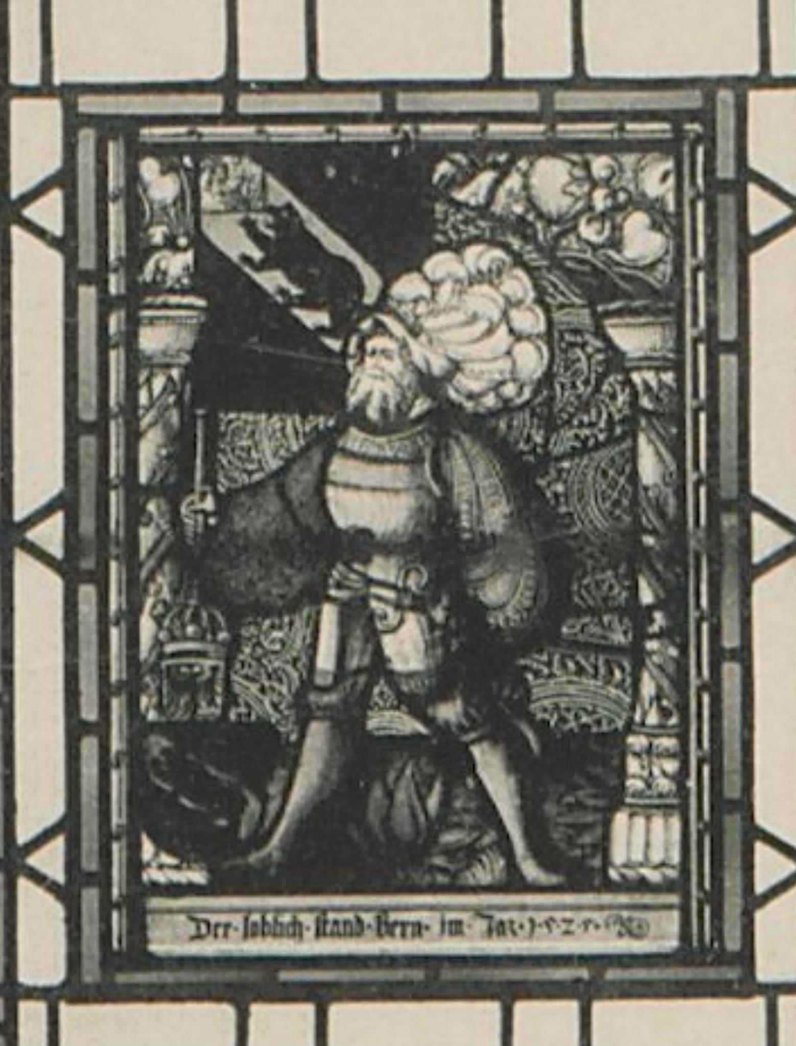 Wie im Auktionskatalog Heberles von 1884 vermerkt, dürfte die Inschrift mit dem Stiftungsjahr 1525 eine Ergänzung darstellen. Weil das Glasgemälde sich stilistisch in die Zeit um 1525 datieren lässt, könnte diese Jahresangabe jedoch durchaus historisch korrekt erneuert worden sein. Sofern es die Berner Obrigkeit an einem Ort in ihrem Staatsgebiet zur Aufstellung bringen wollte, hat sie den Auftrag zu seiner Ausführung einem unbekannten heimischen Meister übertragen. Falls sie es in einen Bau ausserhalb ihres Landes gestiftet hat, ist dafür als Herstellungsort aber auch eine Werkstatt in der Fremde in Betracht zu ziehen.