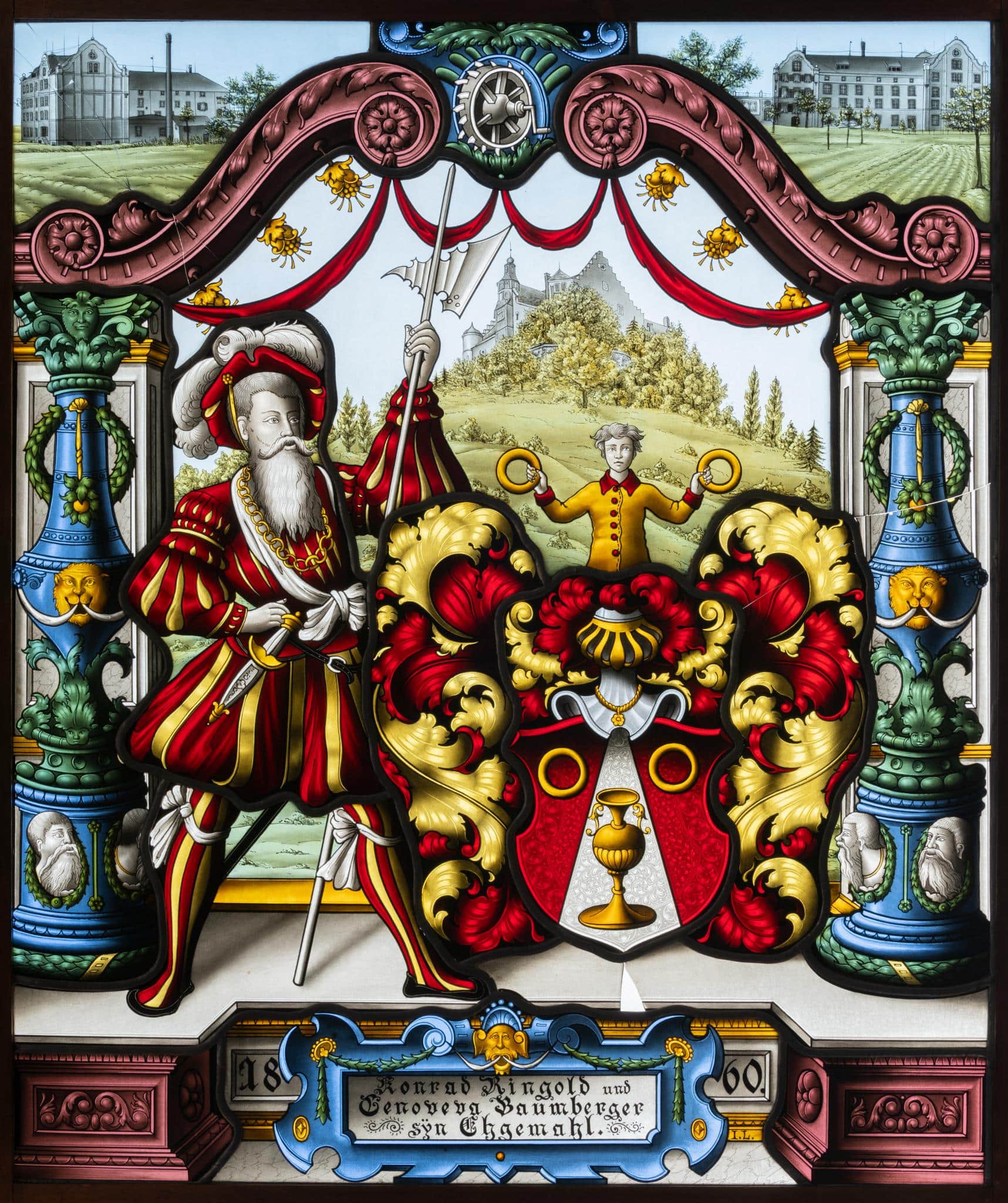 Konrad Ringold und Genoveva Baumberger sÿn Ehgemahl. (unten in der Inschriftenkartusche), 1860. (jeweils zwei Ziffern auf je einer Seite der Inschriftenkartusche)