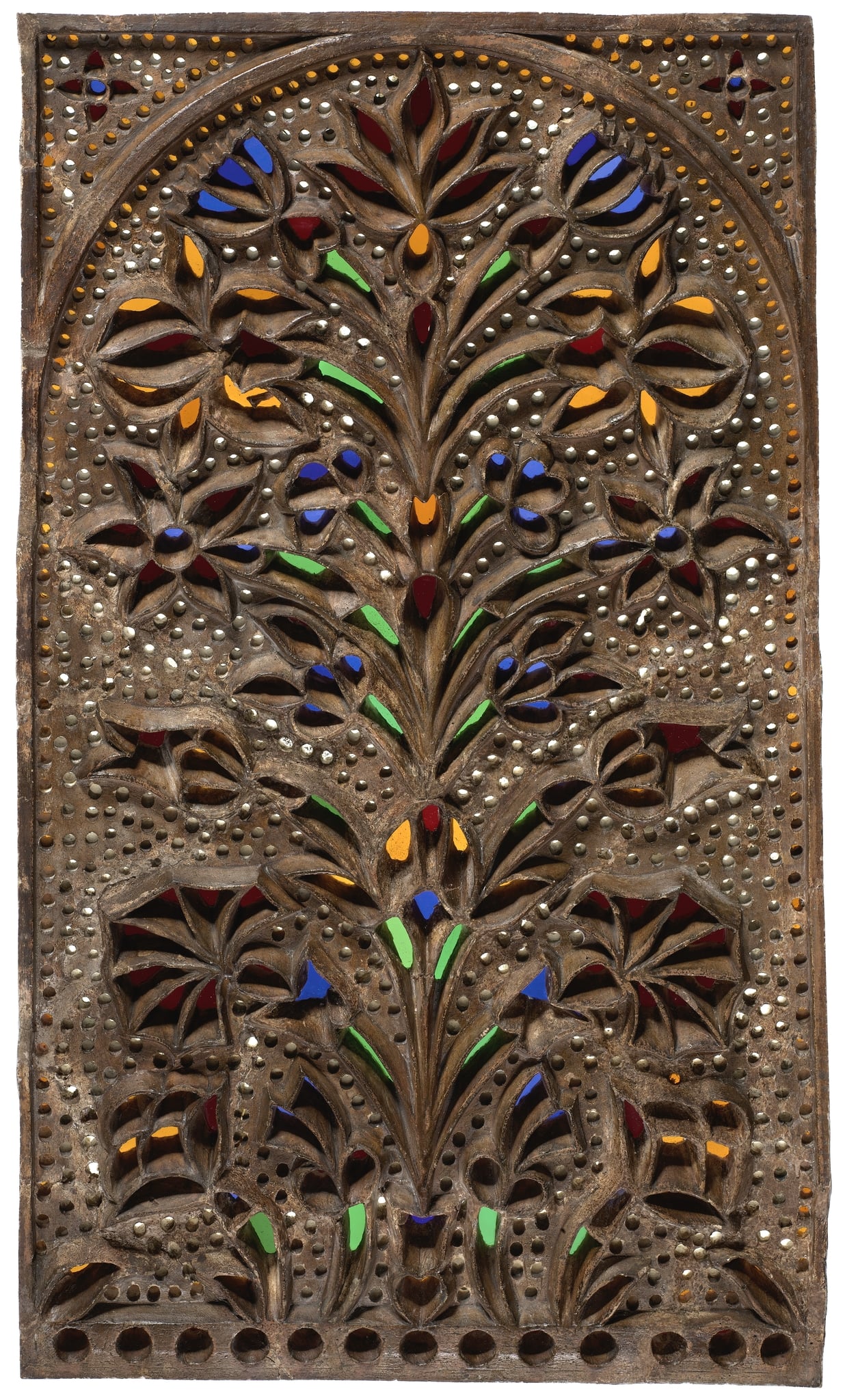 As to its provenance, the window is one of 39 qamariyyāt supposedly bought in Cairo by the architect Ambroise Baudry (1883–1906) for the French civil mining engineer and art collector Baron Alphonse Delort de Gléon (1843–1899) (Bailly et al., 2008, pp. 16–24). They adorned the Ottoman salon of Delort de Gléon’s hôtel particulier, purchased in 1883, at rue Vézelay 18 in Paris (Volait, 2005, pp. 131–134; Volait, 2009, pp. 99–104, 130–135). This is confirmed by several historical photographs preserved at the Département des Arts de l’Islam (DAI) of the Musée du Louvre, which show the windows inserted in the upper parts of wooden mashrabiyyāt (see Linked Objects and Images). The salon was designed by the baron himself in collaboration with the French architect Jules Bourgoin (1838–1908). The creation of orientalizing interiors, composed of original architectural elements and furnishings as well as replicas of the same, was a widespread practice among Western art collectors at the time (Giese, 2016; Volait, 2016; Giese, 2019).
