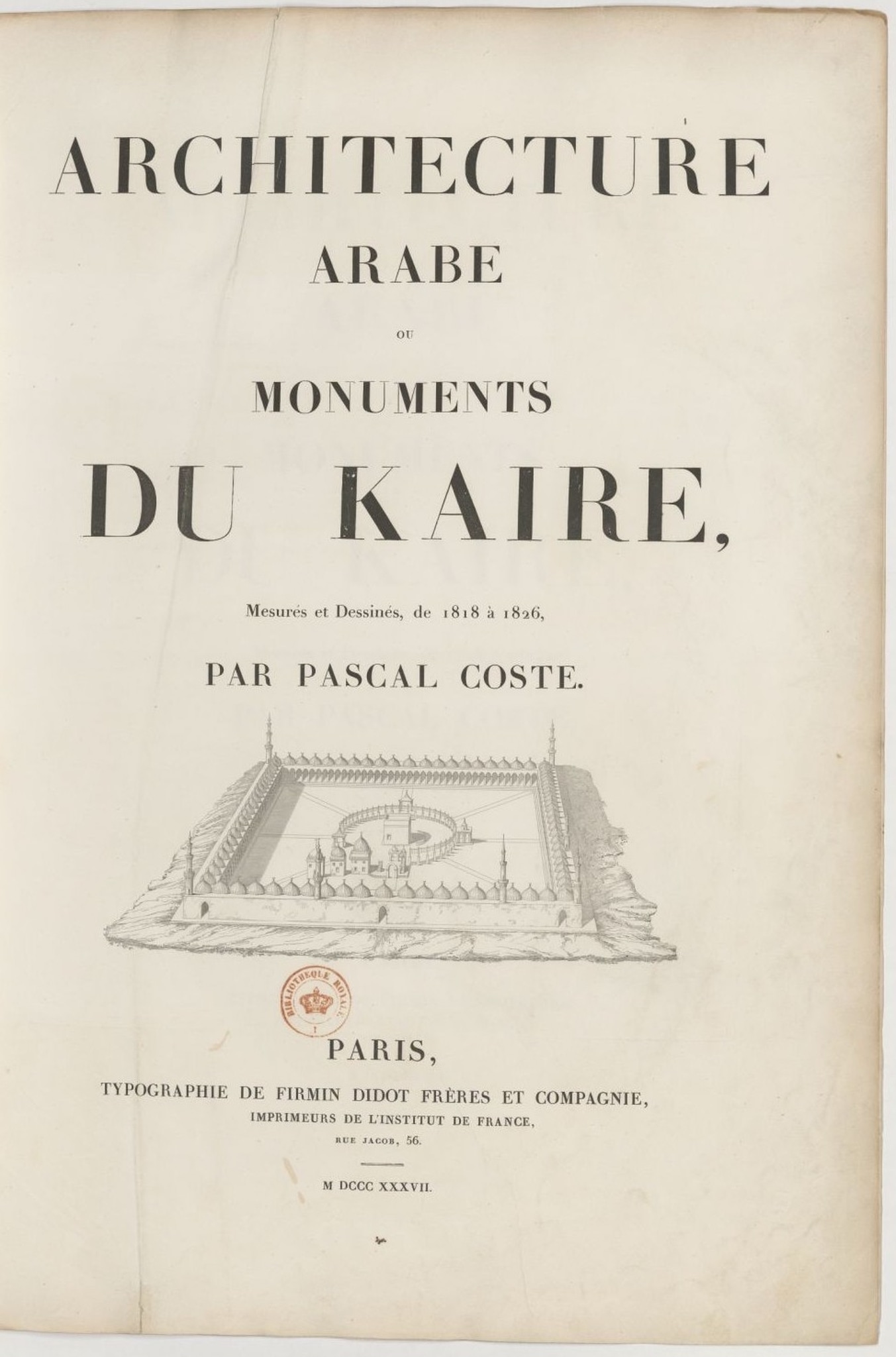 Coste, P. (1837). Architecture arabe ou Monuments du Kaire, mesurés et dessinés, de 1818 à 1826. Paris: Typographie de Firmin Didot Frères et Compagnie, Imprimeurs de l'Institut de France.