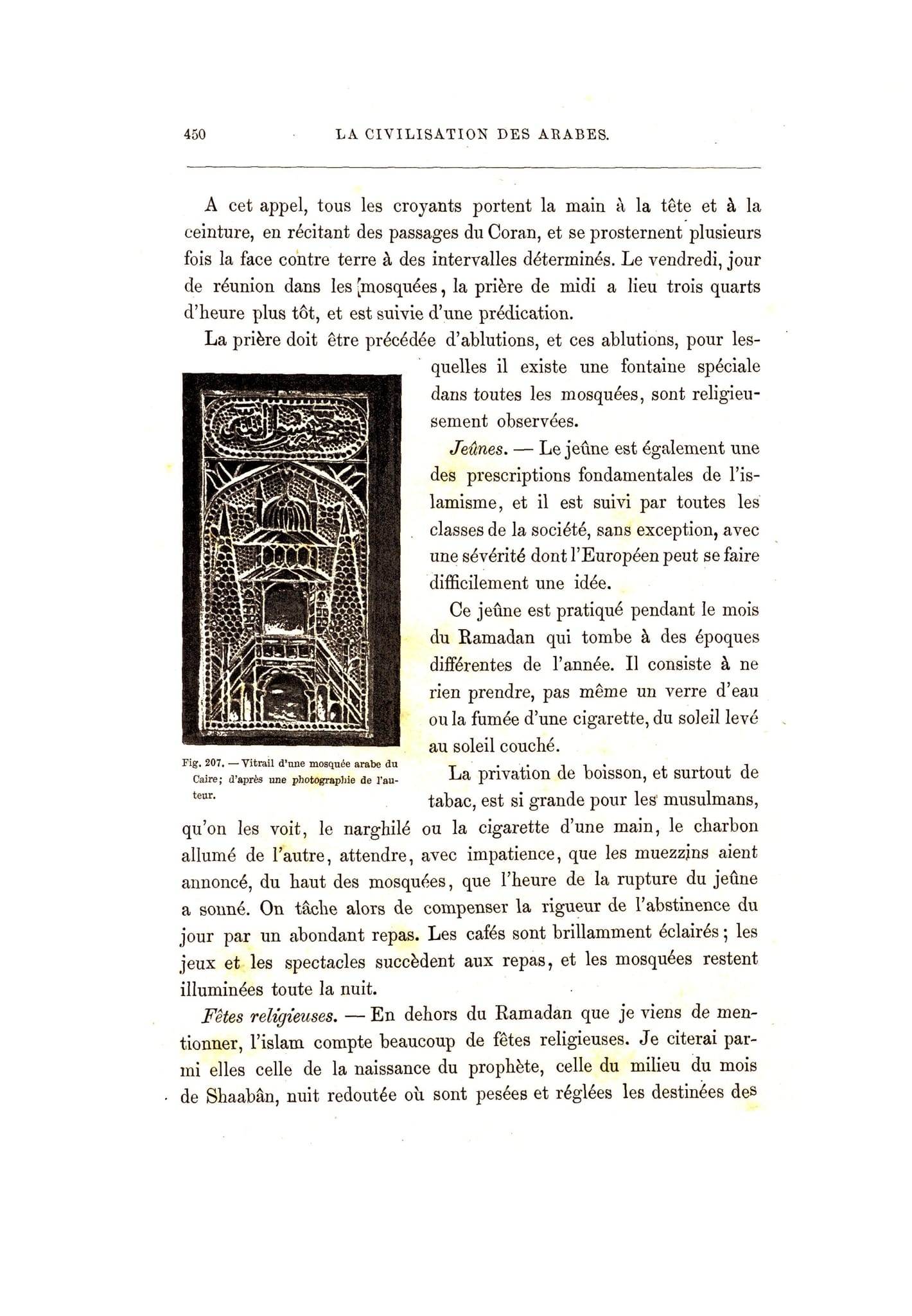 Gustave Le Bon does not say to which mosque in Cairo this stucco and glass window belonged. Probably it belonged, like the windows in the following illustration (IG_77), to the collection of the Museum of Arab Art (Museum of Islamic Art MIA) in Cairo.