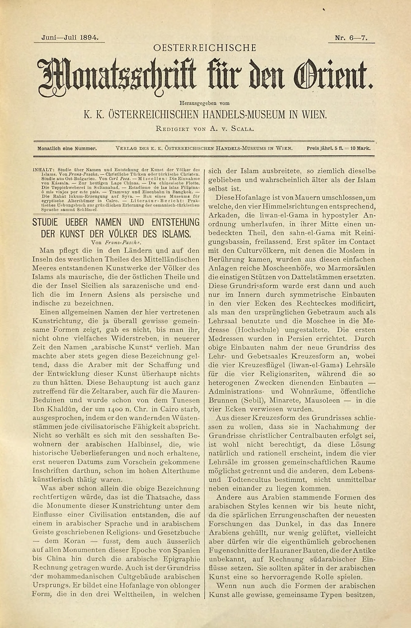 The technique and development of stucco and glass windows is already described in Franz’s pioneering monograph Die Baukunst des Islam, which was published as part of the Handbuch der Architektur (Architecture Handbook) series of 1887; a second extended edition appeared in 1896 (IG_66).