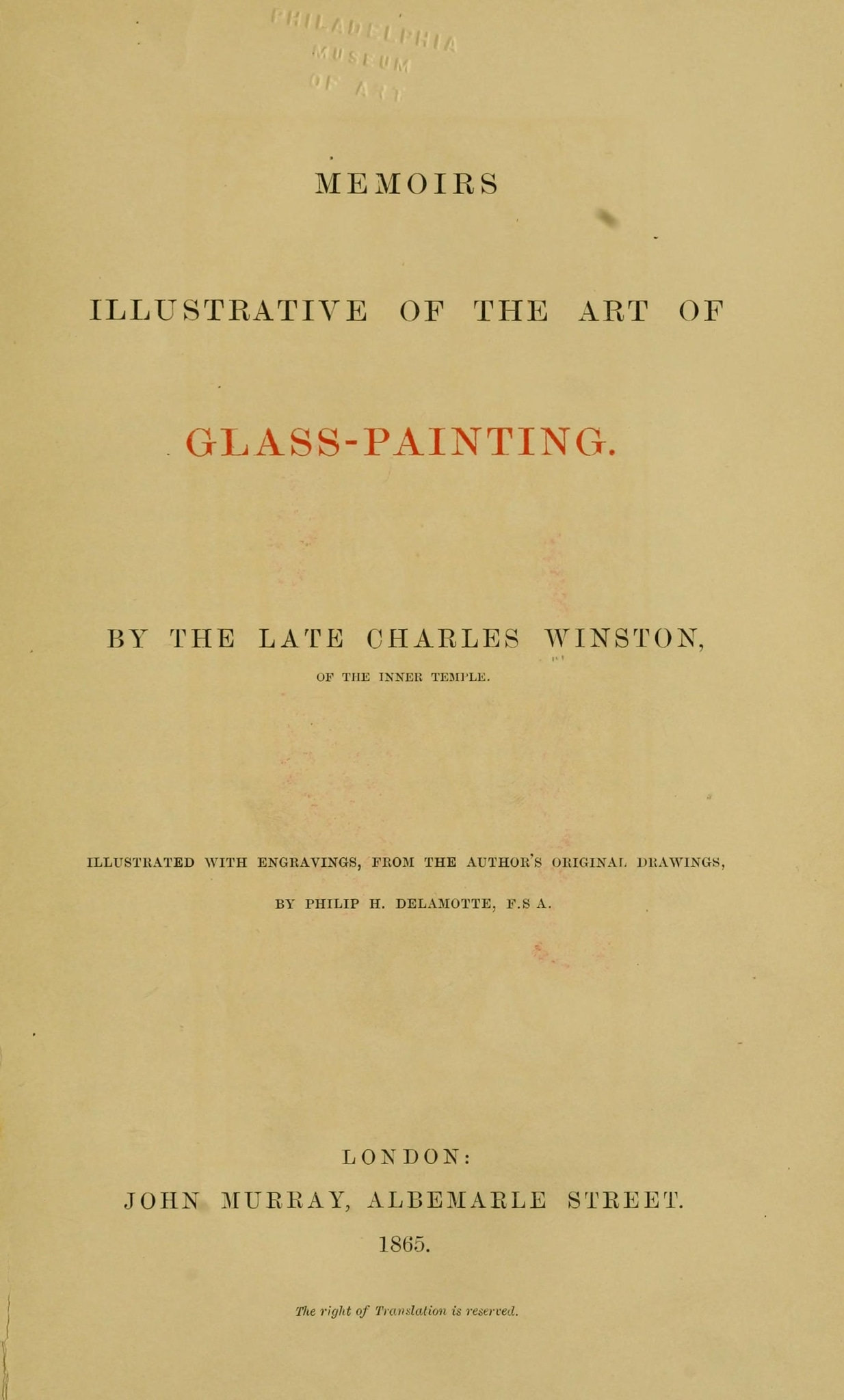 Winston, C. (1865). A Lecture on Glass-painting. In Memoirs Illustrative of the Art of Glass-Painting (pp. 231–255). London: John Murray.
