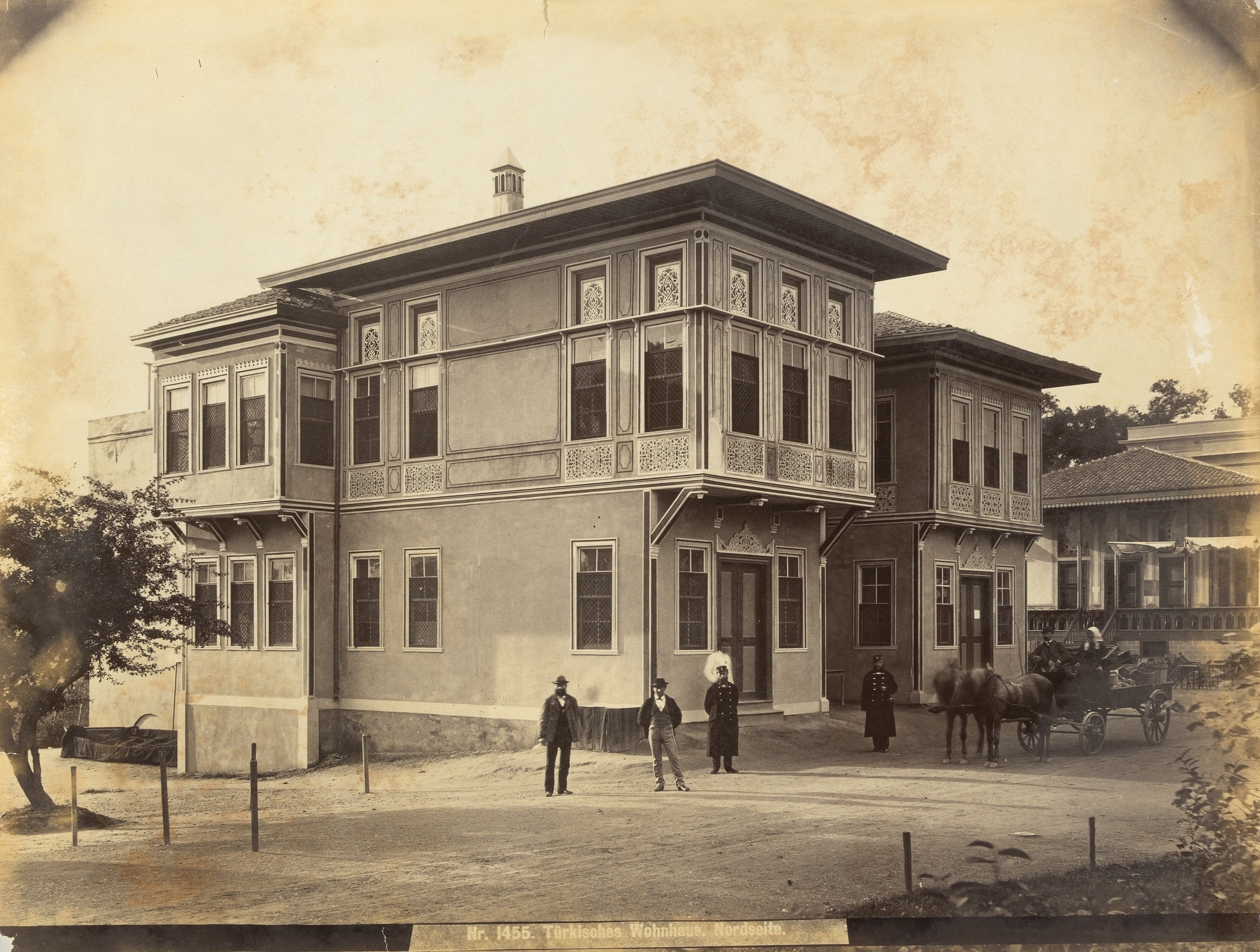 Photographs documenting the Turkish pavilions are solely in black and white, but written sources mention “the splendour of the colours of the glass framework in the upper parts of the windows” of the Turkish dwelling (Maw/Dredge, 1874, p. 381).