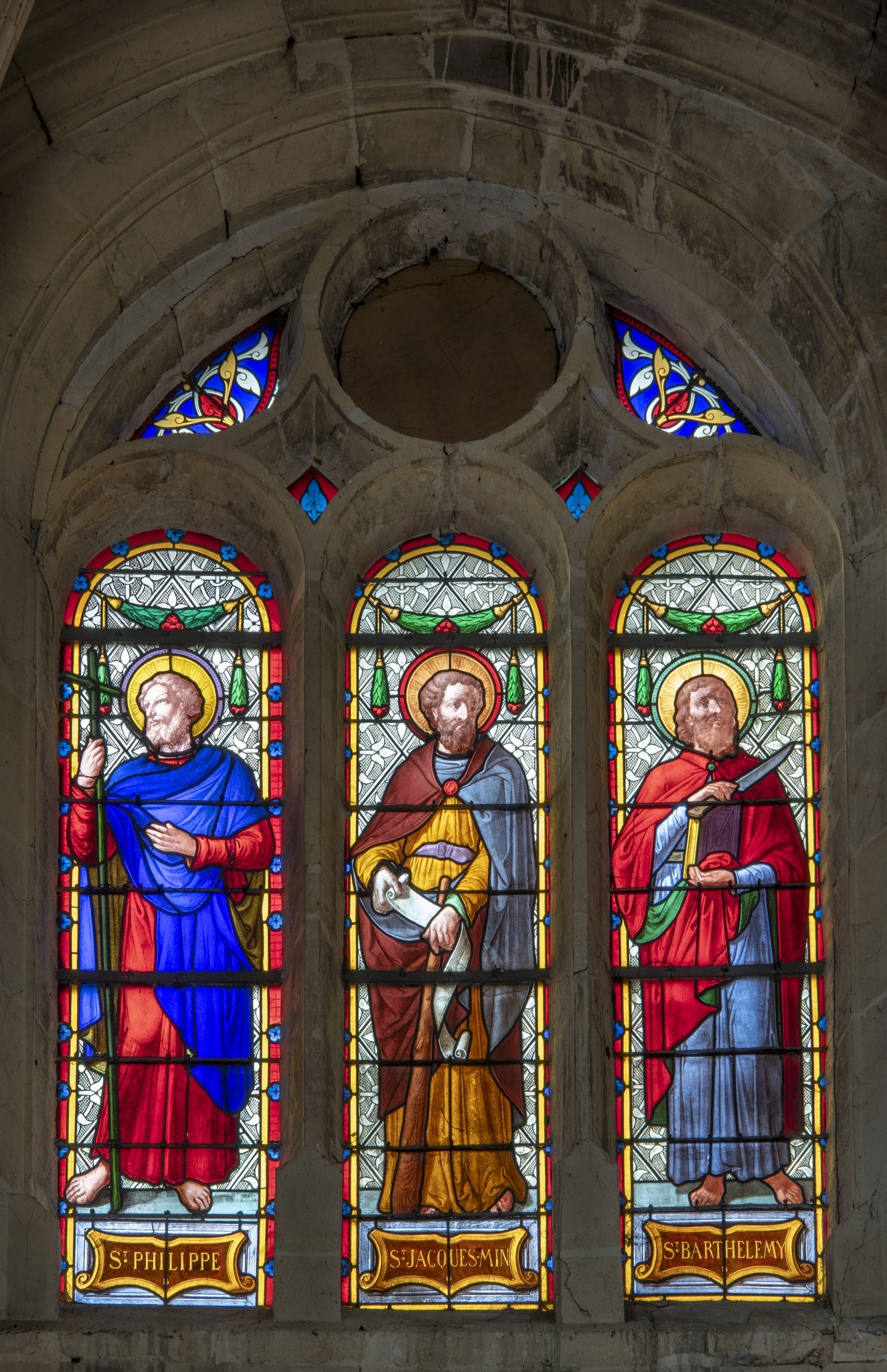 Das Apostelfenster gehört zu den 14 Glasmalereien aus dem Pariser Glasmalerei-Atelier Laurent, Gsell et Cie. (später Gsell-Laurent), mit denen um 1861 das Querschiff und der westliche Teil des Langhauses der Kirche Saint-Martin in L’Isle-Adam ausgestattet wurden (L’Isle-Adam, Musée d’Art et d’Histoire Louis-Senlecq: Archives paroissiales, Carton 6, Registre des délibérations de la Fabrique de la Paroisse Saint-Martin 1825–1893, S. 217). Es ist eines von ursprünglich vier Apostelfenstern im Obergaden des Querschiffs.