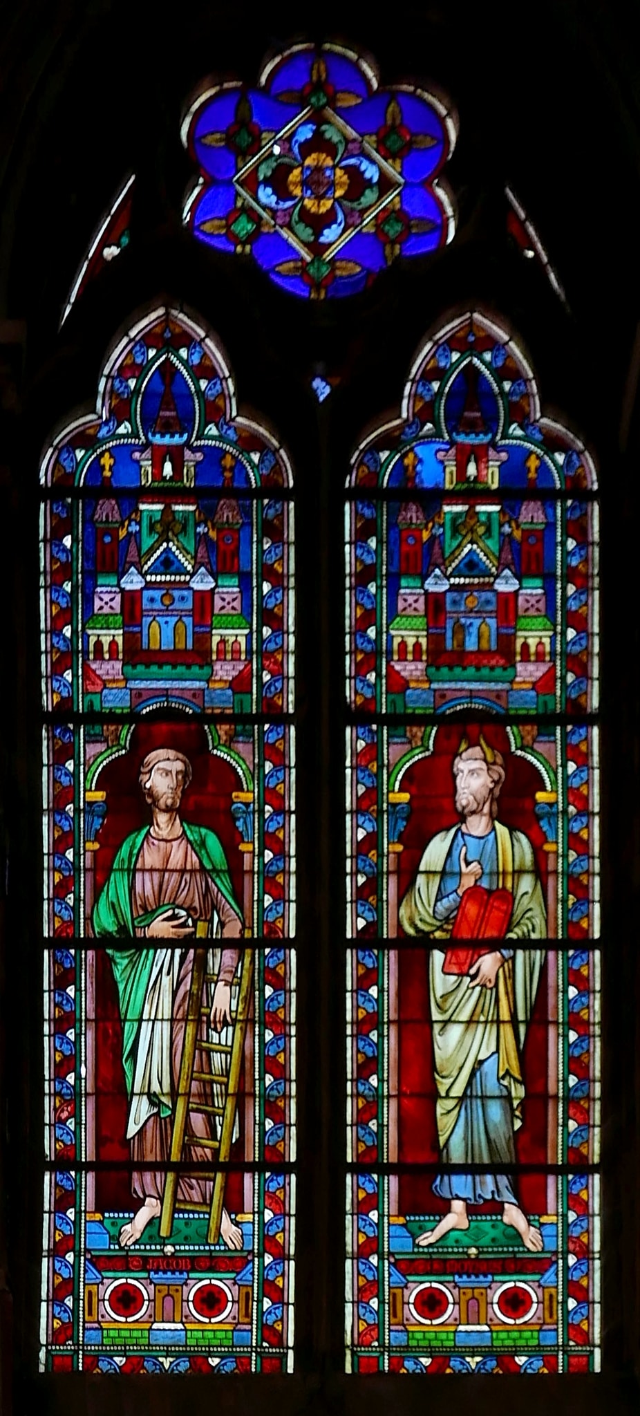 Eine von 62 Glasmalereien der ab 1860 neu errichteten, monumentalen neugotischen Kirche Saint-Bruno in Voiron. Die um 1870 fertiggestellte Glasmalerei-Ausstattung wurde durch eine grosszügige Spende des Kartäuserordens, dessen Mutterkloster «La Grande Chartreuse» sich ca. 25 km östlich von Voiron befindet, finanziert (Avenir, 2006, S. 103). Für den Bau der Kirche hatte sich Frédéric Faige-Blanc (1811–1902), Bürgermeister von Voiron ab 1851, stark eingesetzt. Faige-Blanc war es auch, der den Kontakt zum Atelier Gsell-Laurent in Paris herstellte, das die Glasmalereien der Kirche Saint-Bruno ab 1869 für insgesamt 71’000 Francs herstellte (Gautier, 2010, S. 62, 72). Es handelt sich um einen der umfangreichsten Aufträge, die das damals bereits etablierte Atelier ausführte.