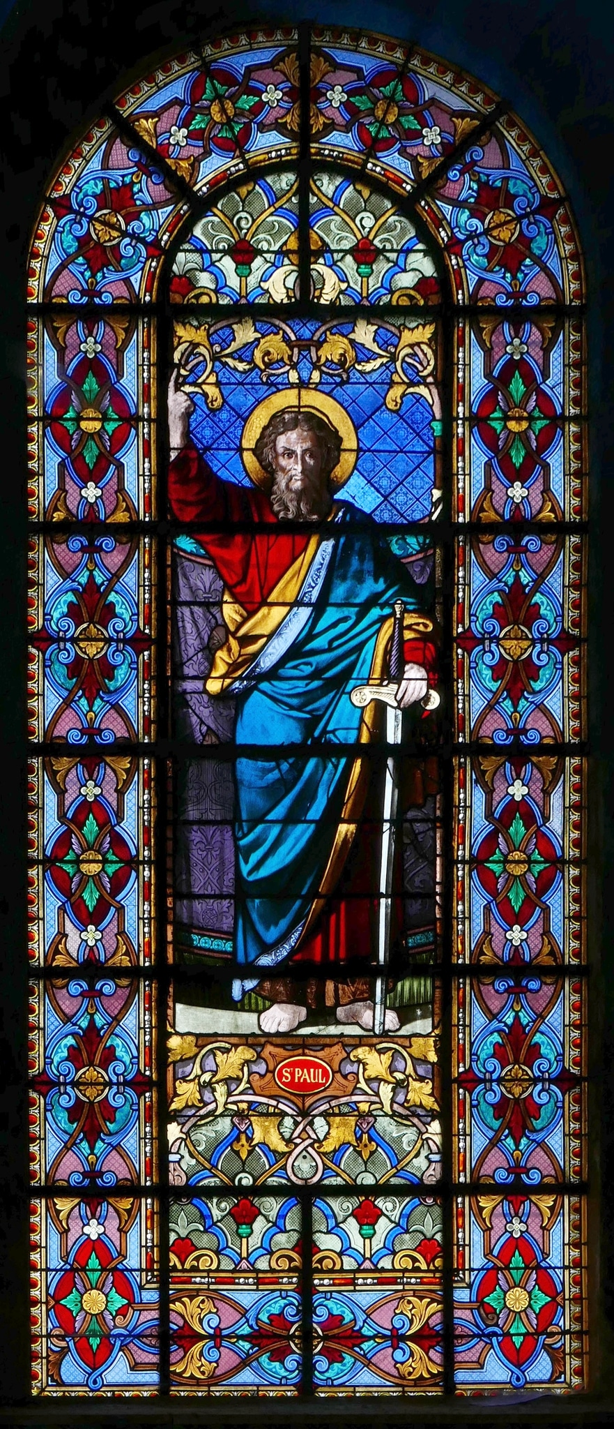 Das Paulus-Fenster ist eine von 14 Glasmalereien mit Heiligenfiguren aus dem Pariser Glasmalerei-Atelier Laurent, Gsell et Cie. (später Gsell-Laurent), die 1863 in Chor und Schiff der Kirche Notre-Dame de l’Assomption in Saint-Dizier eingesetzt wurden. Damals engagierte sich der Pfarrer Pierre Marie Didelot (1803–1873) stark für die Ausstattung der Kirche. Bürger und Bürgerinnen sowie verschiedene Vereinigungen und Zünfte von Saint-Dizier stifteten die Glasmalereien. Sie zeigen Vorbilder des christlichen Lebens und Schutzpatrone und weisen mehrere Bezüge zur örtlichen Eisenindustrie auf. Im Chor und auf der Nordseite des Schiffs sind männliche Heilige gezeigt, auf der Südseite des Schiffs weibliche Heilige. Die sechs Fenster im westlichen Teil des Schiffs sind kleiner als die vier Fenster im östlichen Teil des Schiffs und im Chor. Alle Fenster sind nach dem gleichen Prinzip gestaltet, lassen sich aber aufgrund unterschiedlicher Ornamentrahmen in drei Gruppen gliedern. Insgesamt kosteten die Glasmalereien 15’000 Francs. Im Paulus-Fenster findet sich ein aus der ibero-islamischen Baukunst abgeleitetes sogenanntes «Sebka»-Ornament mit Rautenelementen aus sich überschneidenden Bögen. Dieses Ornament wurde durch Publikationen wie Jules Goury und Owen Jones’s Plans, Elevations, Sections and Details of the Alhambra (London 1842 und 1845) in der Kunst und Architektur des 19. Jahrhunderts populär.