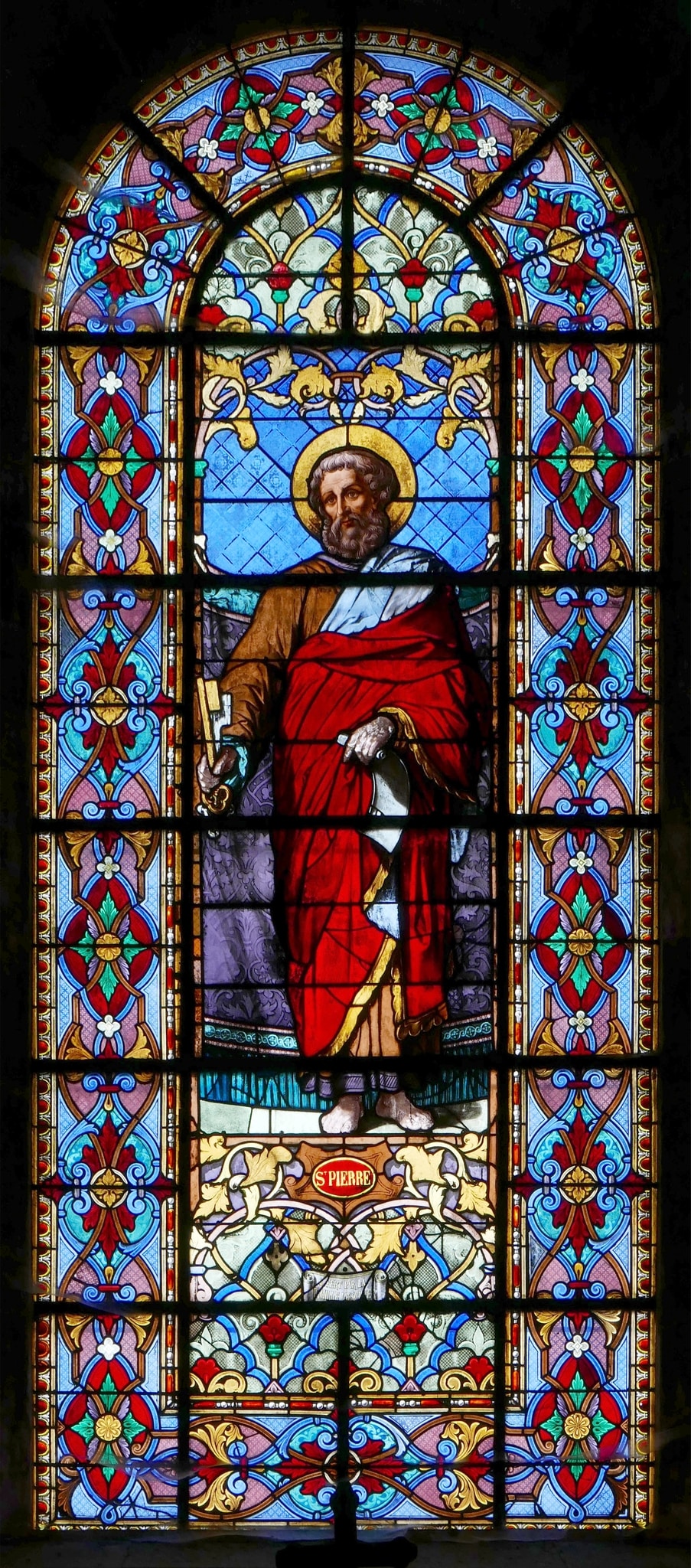 Das Petrus-Fenster ist eine von 14 Glasmalereien mit Heiligenfiguren aus dem Pariser Glasmalerei-Atelier Laurent, Gsell et Cie. (später Gsell-Laurent), die 1863 in Chor und Schiff der Kirche Notre-Dame de l’Assomption in Saint-Dizier eingesetzt wurden. Damals engagierte sich der Pfarrer Pierre Marie Didelot (1803–1873) stark für die Ausstattung der Kirche. Bürger und Bürgerinnen sowie verschiedene Vereinigungen und Zünfte von Saint-Dizier stifteten die Glasmalereien. Sie zeigen Vorbilder des christlichen Lebens und Schutzpatrone und weisen mehrere Bezüge zur örtlichen Eisenindustrie auf. Im Chor und auf der Nordseite des Schiffs sind männliche Heilige gezeigt, auf der Südseite des Schiffs weibliche Heilige. Die sechs Fenster im westlichen Teil des Schiffs sind kleiner als die vier Fenster im östlichen Teil des Schiffs und im Chor. Alle Fenster sind nach dem gleichen Prinzip gestaltet, lassen sich aber aufgrund unterschiedlicher Ornamentrahmen in drei Gruppen gliedern. Insgesamt kosteten die Glasmalereien 15’000 Francs. Im Petrus-Fenster findet sich ein aus der ibero-islamischen Baukunst abgeleitetes sogenanntes «Sebka»-Ornament mit Rautenelementen aus sich überschneidenden Bögen. Dieses Ornament wurde durch Publikationen wie Jules Goury und Owen Jones’s Plans, Elevations, Sections and Details of the Alhambra (London 1842 und 1845) in der Kunst und Architektur des 19. Jahrhunderts populär. Im Musée Carnavalet in Paris wird eine Entwurfszeichnung einer Petrusfigur aufbewahrt (D.15938), die der Darstellung in Saint-Dizier entspricht.