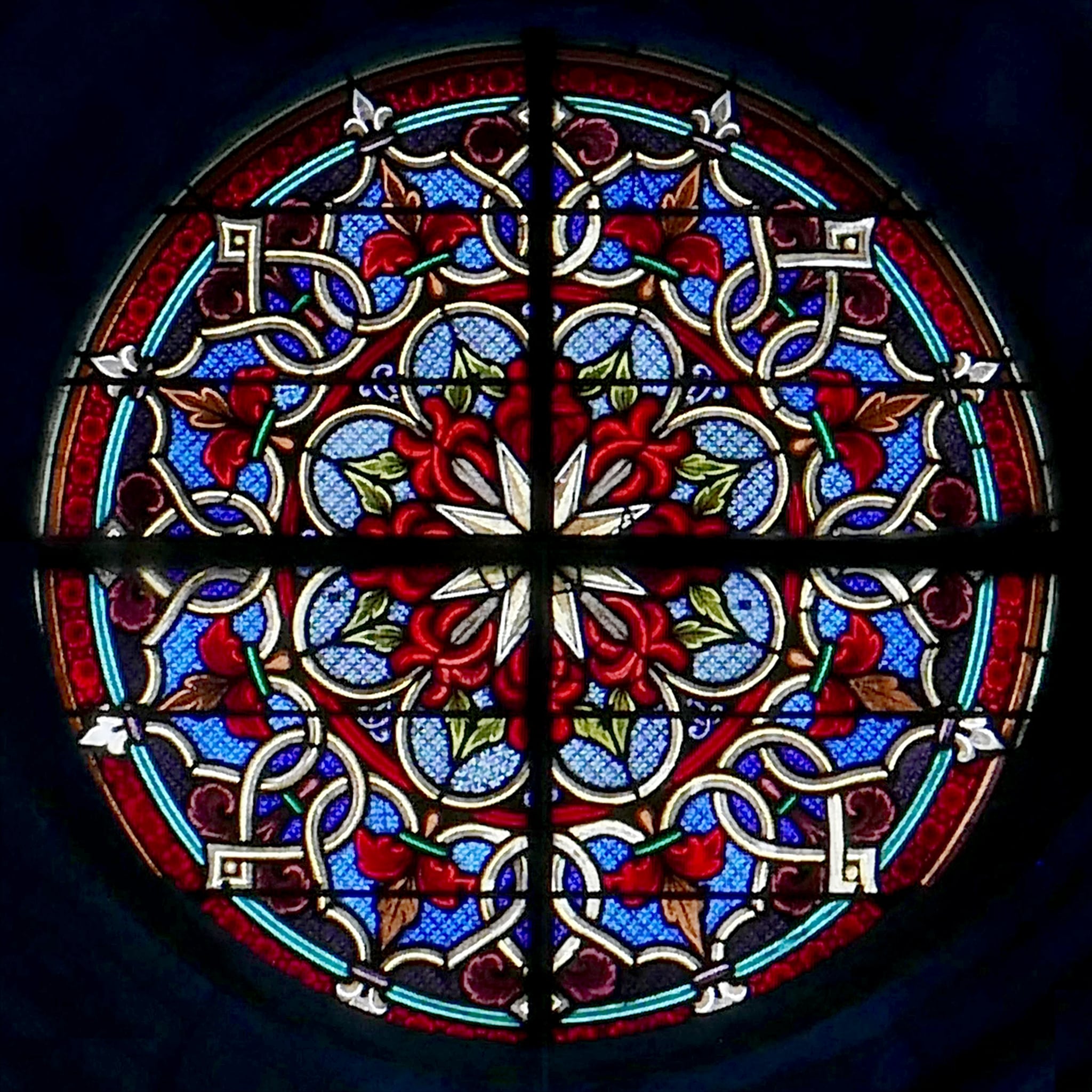 Das ornamentale Rundfenster wurde 1864 in der Kirche Notre-Dame de l’Assomption in Saint-Dizier eingesetzt (Didier, 1897, S. 179). Zusammen mit seinem Pendant im nördlichen Seitenschiff ergänzt es die 14 Glasmalereien mit Heiligenfiguren von 1863, die ebenfalls im Pariser Glasmalerei-Atelier Laurent, Gsell et Cie. (später Gsell-Laurent) hergestellt wurden. Im Musée Carnavalet in Paris wird eine Entwurfszeichnung dazu aufbewahrt (D.14638(217)).