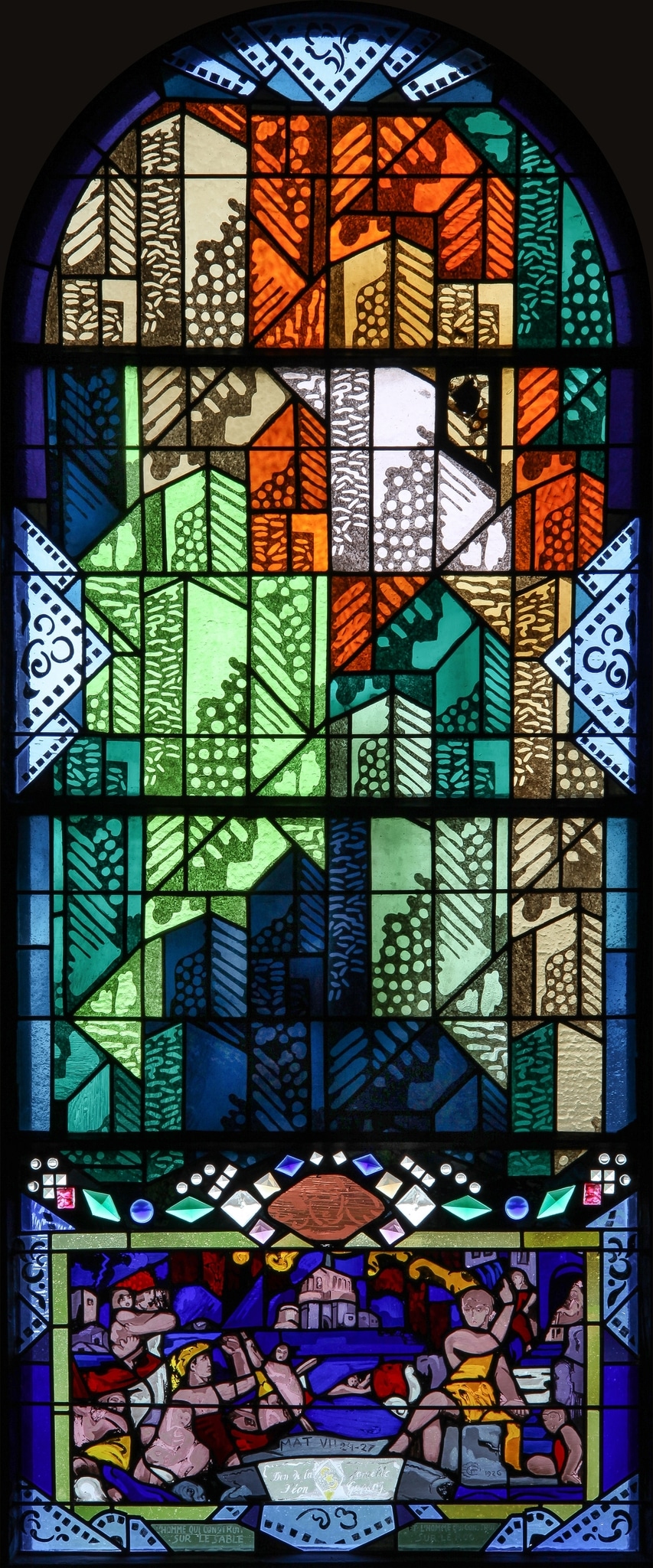 Ce vitrail a été réalisé en 1926 par Alexandre Cingria pour la nef de l’église Notre-Dame-de-l’Assomption d’Echarlens.