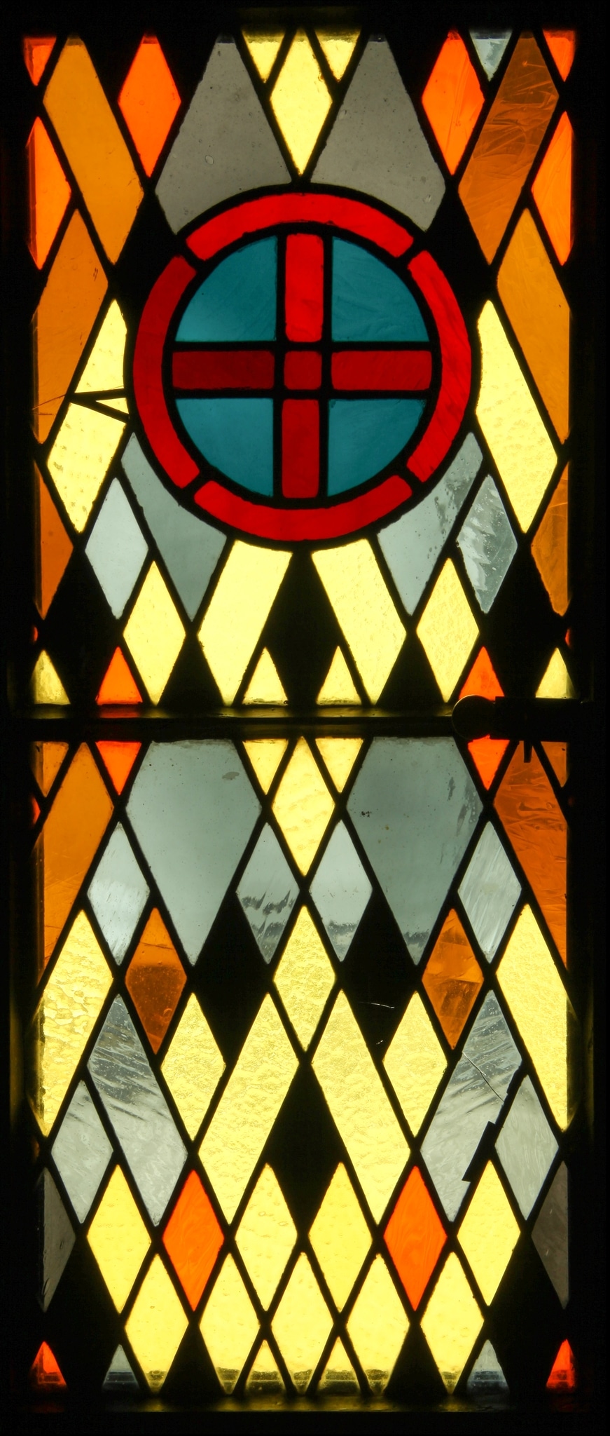 Lors de la construction de la nouvelle chapelle du Foyer franciscain de Saint-Maurice, Fernand Dumas, comme il le fait habituellement, dessine l’ensemble de l’ameublement de la sacristie, dans laquelle le bois prédomine. Cinq fenêtres s’ouvrent sur la cour du foyer. Sur la façade sud, quatre verrières ornées d’une croix sont disposées côte à côte, alors que sur le mur ouest ne figure qu’une seule baie rehaussée également d’une croix inscrite dans un cercle. Les teintes bleues, brunes et orange prédominent dans la série de quatre vitraux, alors que les jaune, orange et brun parent cette verrière isolée. Des verres plus clairs sont disposés parcimonieusement sur chaque oeuvre, permettant de répandre une lumière suffisante dans la pièce.