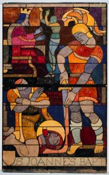 Décollation de saint Jean-Baptiste (quatrième scène depuis le haut du vitrail de saint Jean-Baptiste)