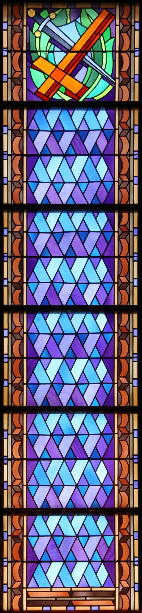 GSL_291: Vitrail géométrique avec les symboles de saints Pierre et Paul