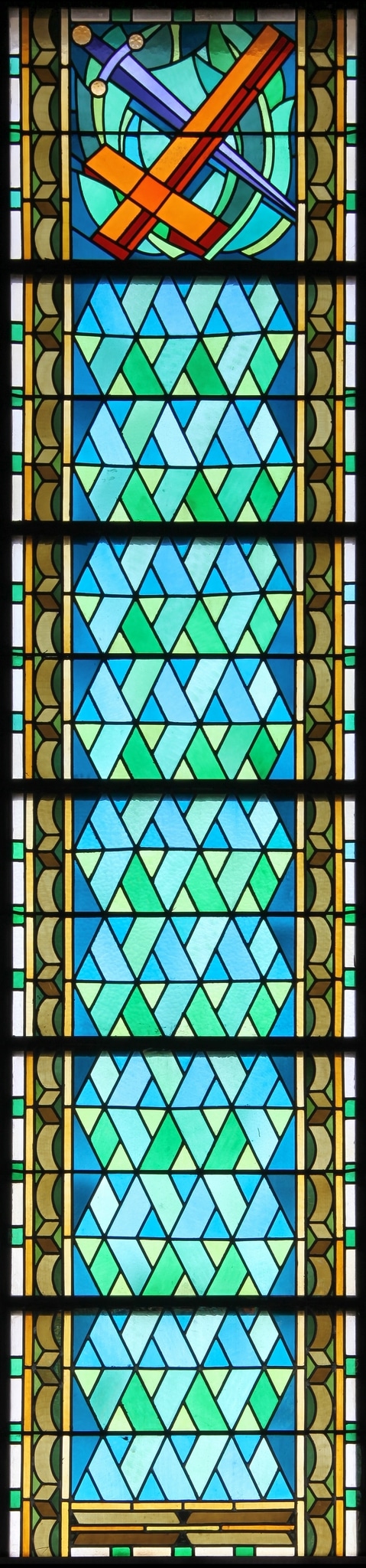 GSL_293: Vitrail géométrique avec les symboles de saints Pierre et Paul