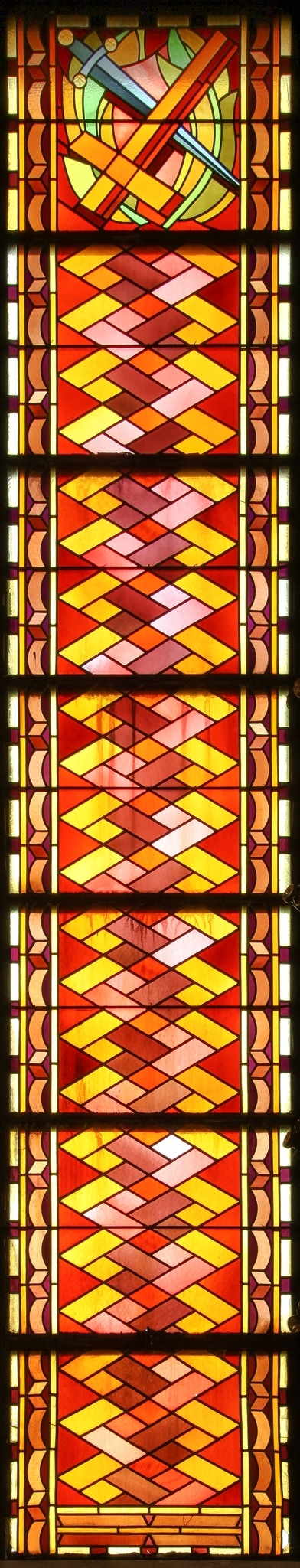 GSL_297: Vitrail géométrique avec les symboles de saints Pierre et Paul