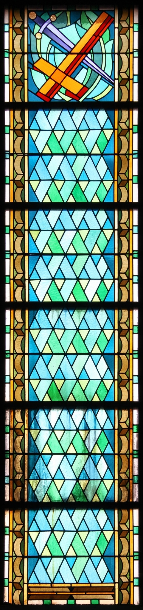 GSL_300: Vitrail géométrique avec les symboles de saints Pierre et Paul