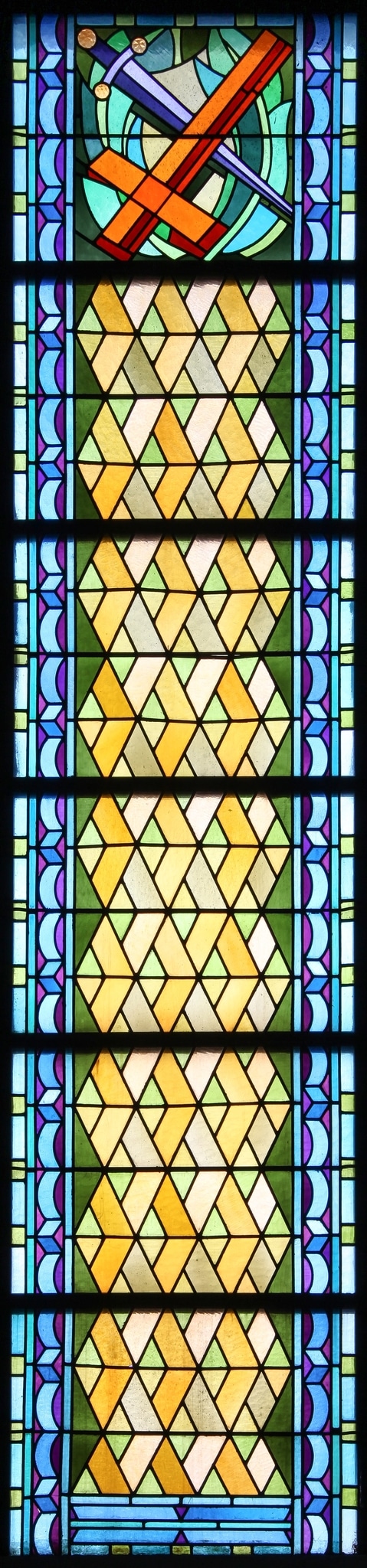 GSL_302: Vitrail géométrique avec les symboles de saints Pierre et Paul