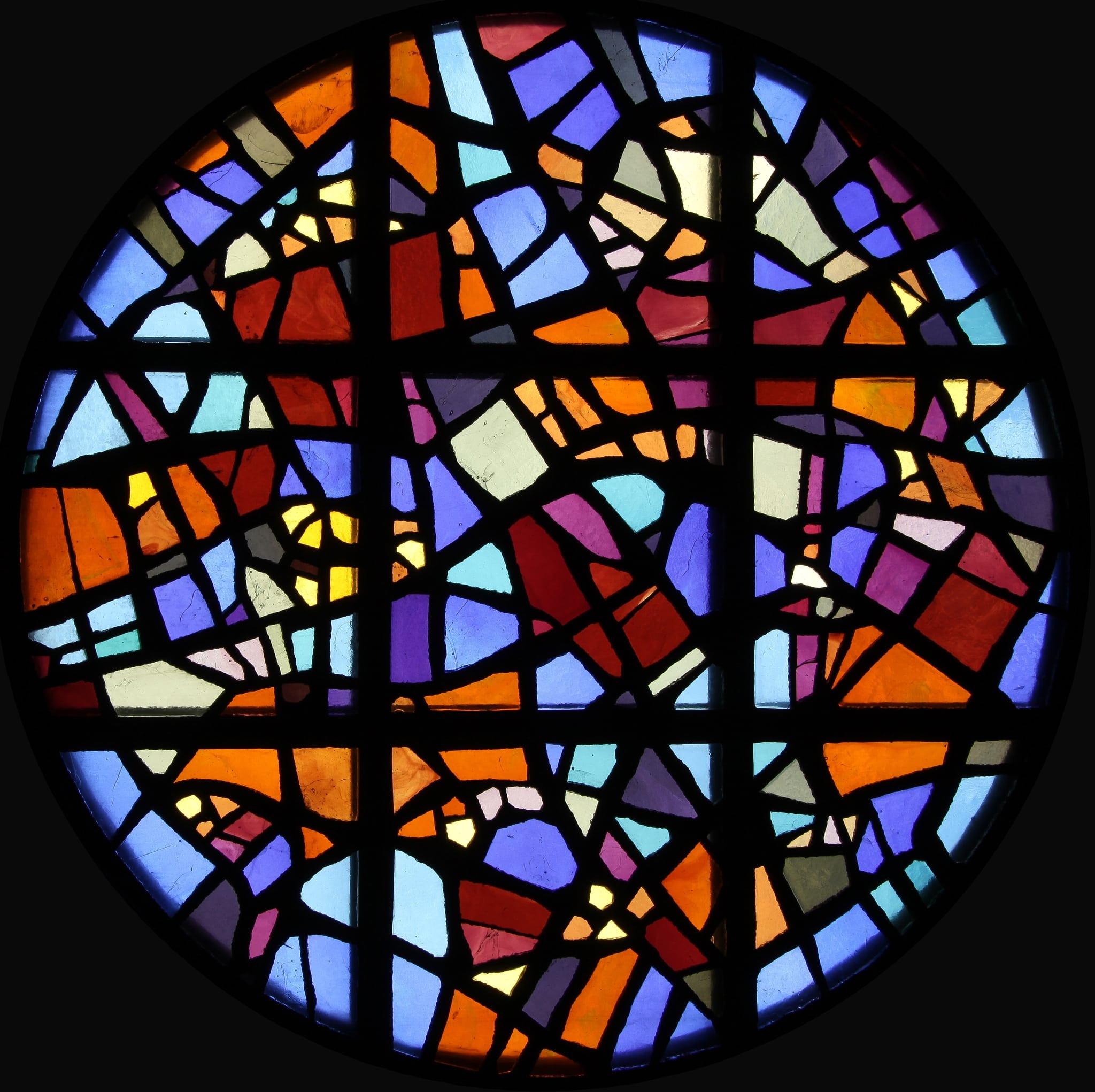 Trente ans plus tard, la paroisse entame des démarches pour remplacer cette vitrerie en mauvais état, plusieurs morceaux étant déjà tombés et d’autres menaçant de le faire (Bulletin paroissial de Mézières, 1968). C’est grâce à de nombreux dons que cette verrière abstraite, la première dans l’église, voit le jour pour marquer les trente ans de l’église. Yoki opte pour la technique de la dalle de verre et réalise cette oeuvre en collaboration avec le maître verrier Michel Eltschinger, qui vient de s’installer à son compte après avoir travaillé plus de dix pour Herbert Fleckner. Habitué à travailler la dalle de verre depuis ses débuts dans le métier en 1953, il avait apprivoisé cette technique difficile à force d’essais, de réflexions et d’expérience. Il en réalisera de nombreuses en collaboration avec Yoki (M. Eltschinger, communication personnelle, 21 mars 2021).