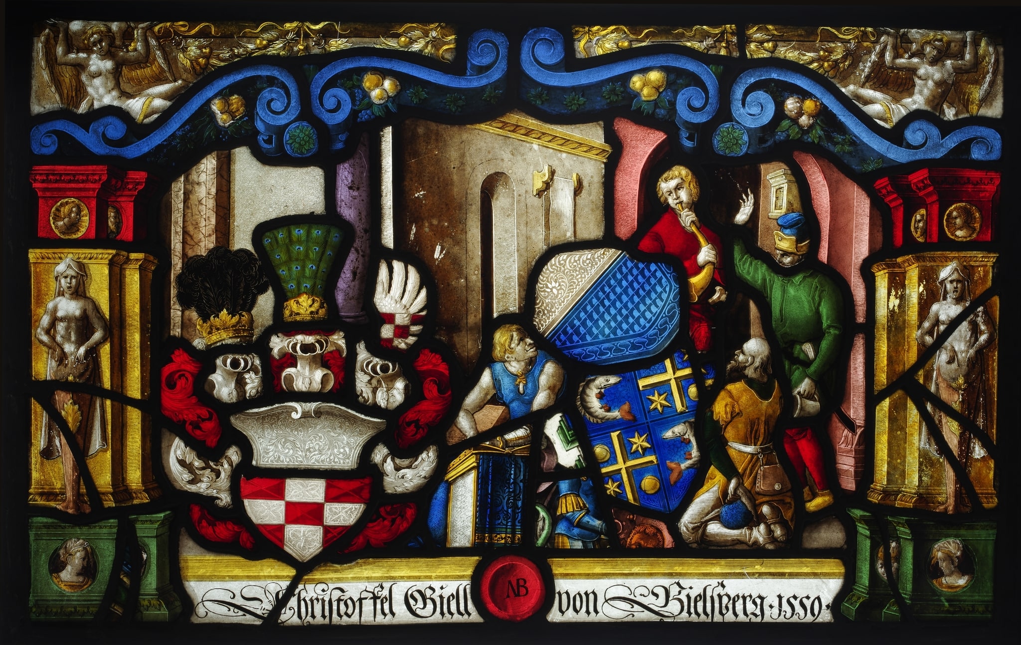 Sidler, 1905, p. 102, n° 70, remarque : "Aux Armes de Christoffel Giell von Bielsberg 1559. signé AB."