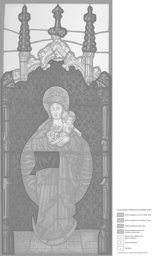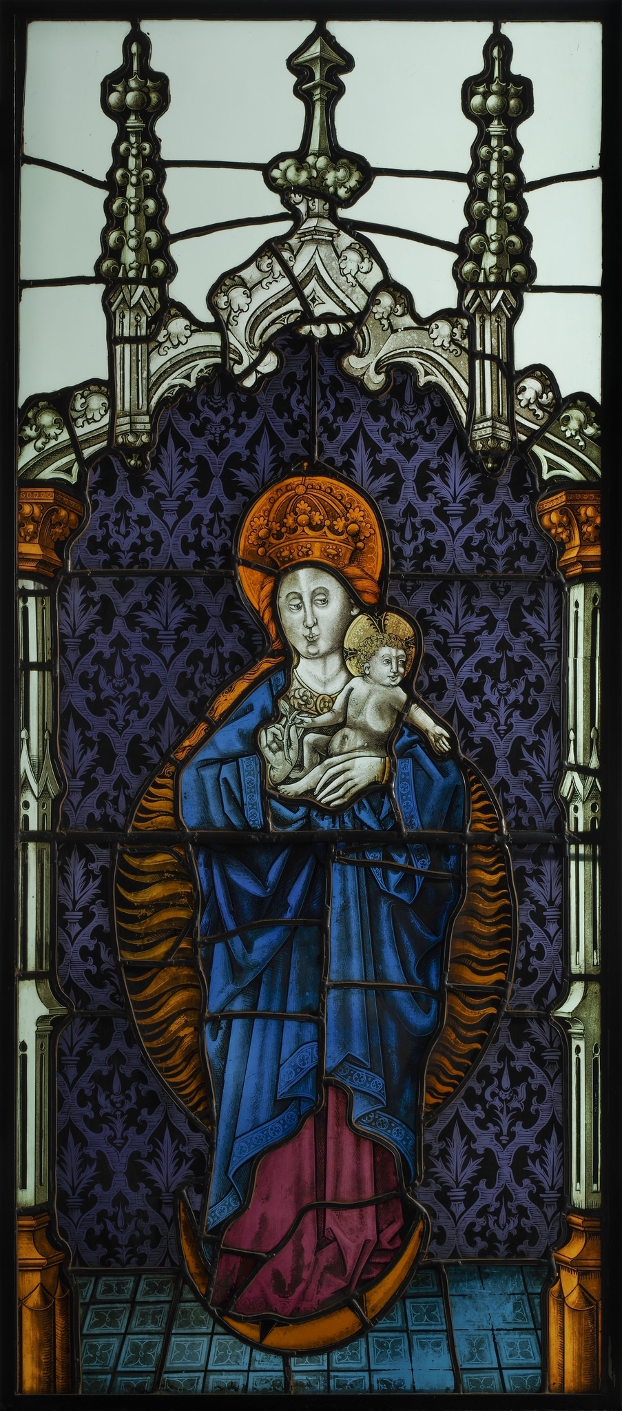 Plusieurs vitraux exécutés à la même époque dans la même aire géographique et représentant de manière similaire la Vierge à l’Enfant sont aujourd’hui attribués à des ateliers proches du cercle de Peter Hemmel. Il s’agit par exemple du panneau de 1475 de l’église Saint-Amandus à Bad Urach (Frankl, 1956, n° 50), de celui daté vers 1479 de la collégiale de Tübingen (Becksmann, 1986, p. 307, fig. 221, ill. 394) ou encore de celui commandé vers 1485 pour le choeur de l’église Saint-Laurent à Nuremberg (Funk, 1995, p. 56-57).