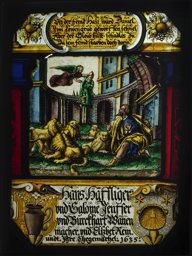 Ce vitrail forme un ensemble avec les panneaux offerts en 1635 par les couples Häfliger-Jensler et Wannenmacher-Remund illlustrant Daniel dans la fosse aux lions (GE_2188) et par Remund et Krattiger de Frauenkappelen figurant le sacrifice d’Isaac (GE_2198), tous trois conservés au Musée Ariana.