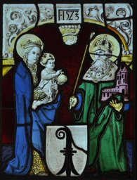 Sauterel, V. (2024). Vitrail aux armes de Bâle-Ville avec la Vierge à l'Enfant et l’empereur Henri II. Dans Vitrosearch. Consulté le 5 décembre 2025 de https://www.vitrosearch.ch/objects/2717167.