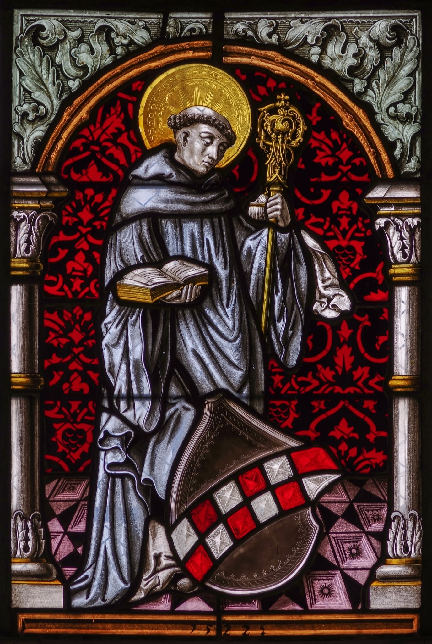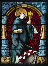 Pour cette verrière consacrée à Erhard Kastler, abbé de Saint-Urbain avec saint Bernard de Clairvaux, c’est un panneau original datant vers 1522 et attribué au peintre verrier zurichois Hans Funk par Lehmann (1915, p. 153-155), conservé non pas à Ursenbach, mais à l'église Saint-Martin d'Utzenstorf (BE) (BE_711) (Baeriswyl, 2004, p. 25-26) qui a servi de modèle à Johann Heinrich Müller. Huit vitraux, dont celui-ci, ont été offerts en 1522 pour la construction de la nouvelle église d’Utzenstorf et ont été réalisés par le même atelier (Lehmann, 1915, p. 153-155). L’oeuvre de Müller est en tous points identique à l’original, à l’exception de modifications de coloris pour l’habit du saint, le sol carrelé et les écoinçons.